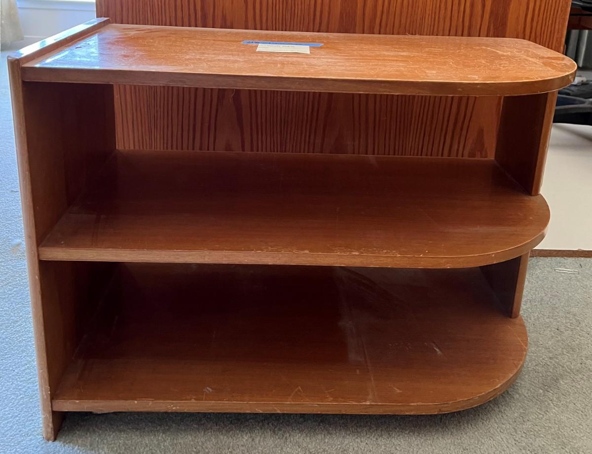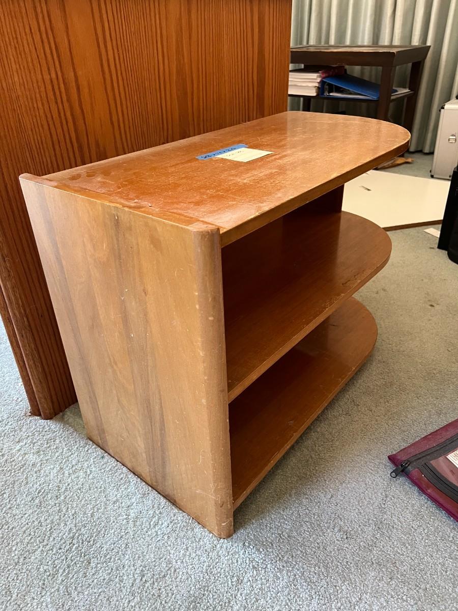 Wooden shelving unit measuring 28 x 14 x 20, can be used as a printer stand.