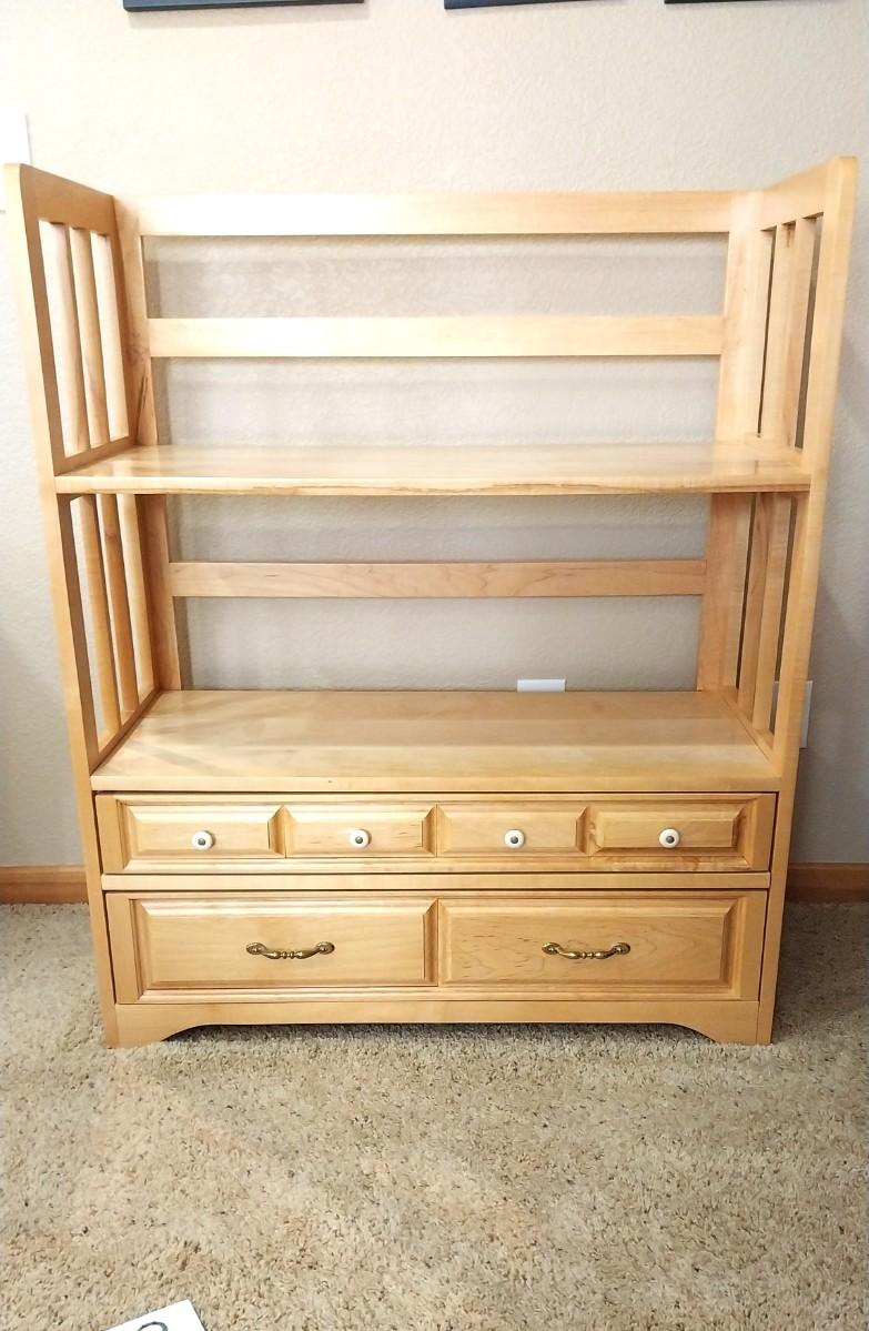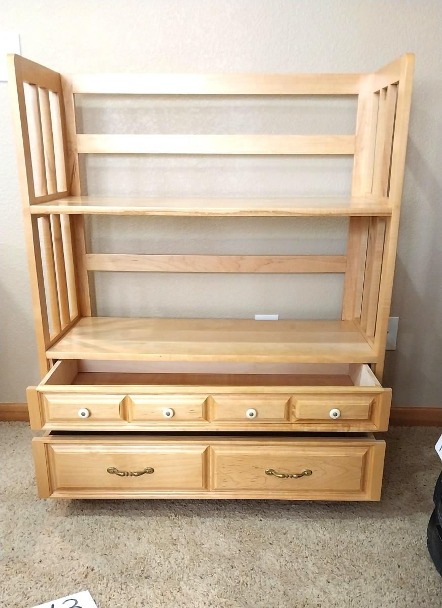 WOODEN SHELVING UNIT WITH STORAGE