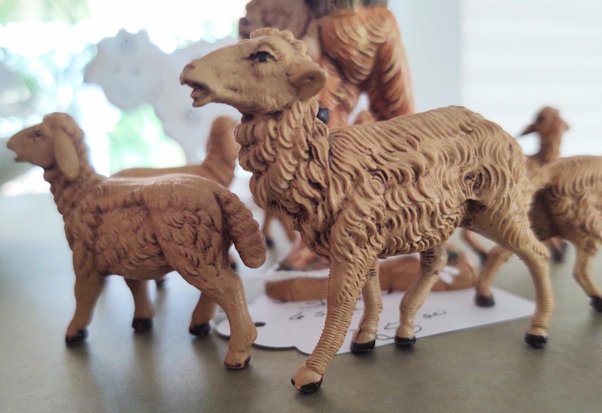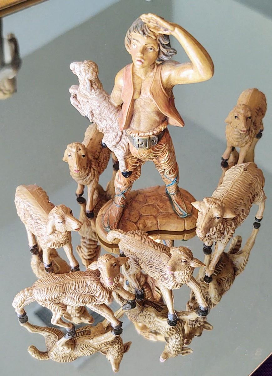 Wooden Shepherd and 6 Sheep