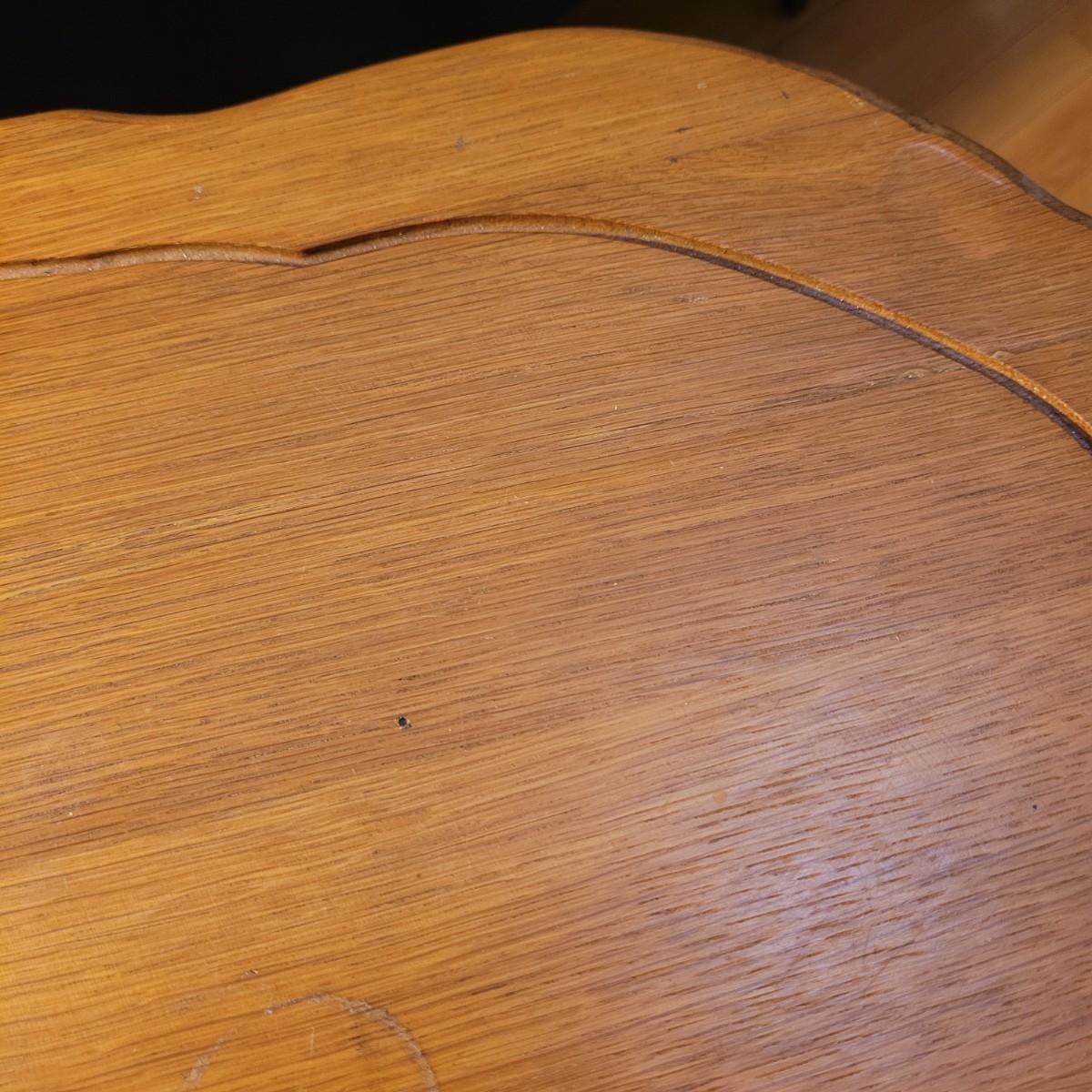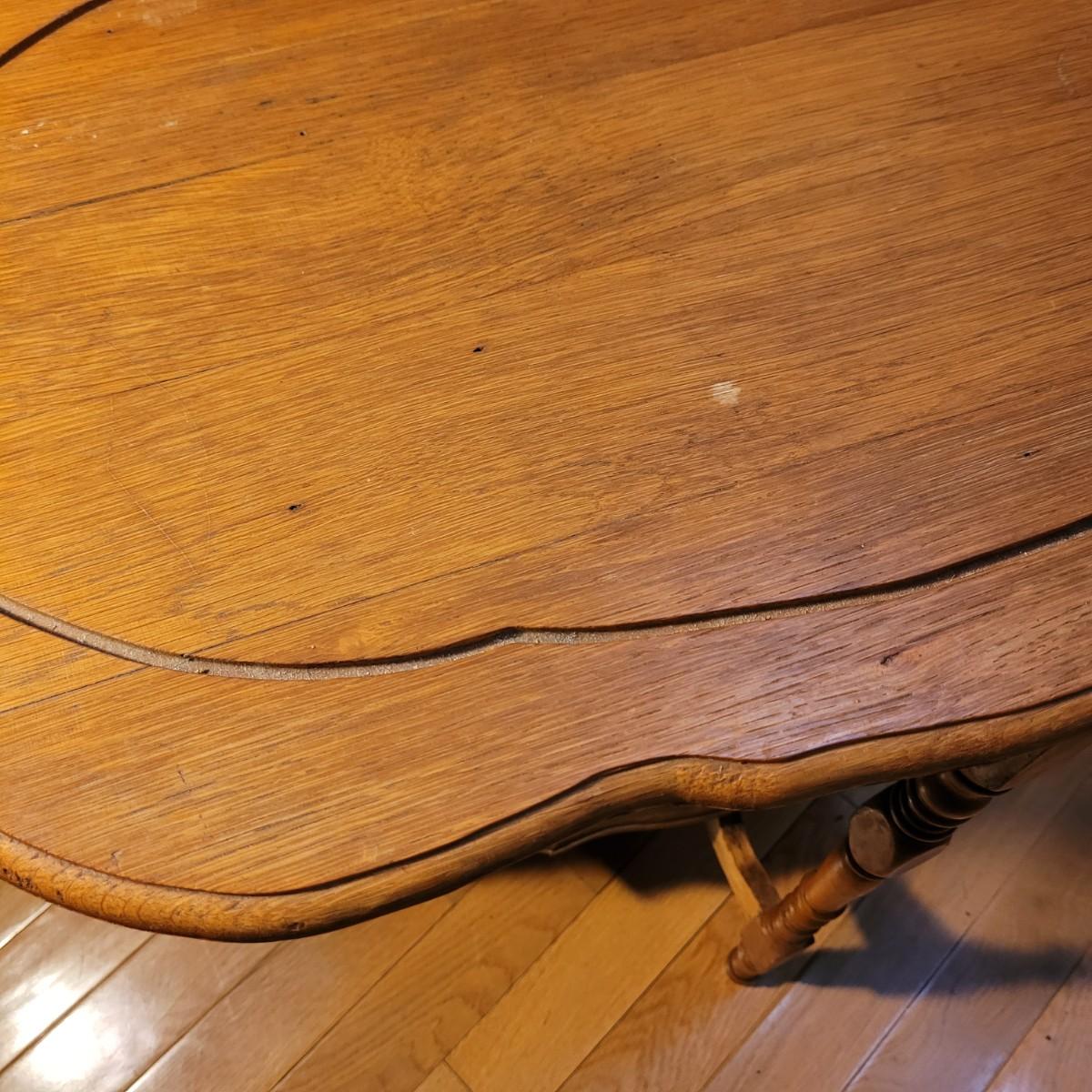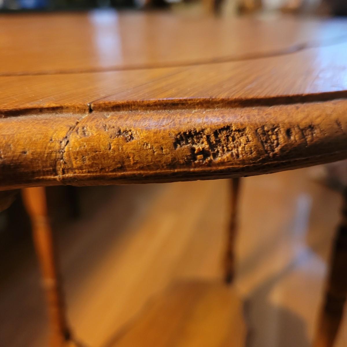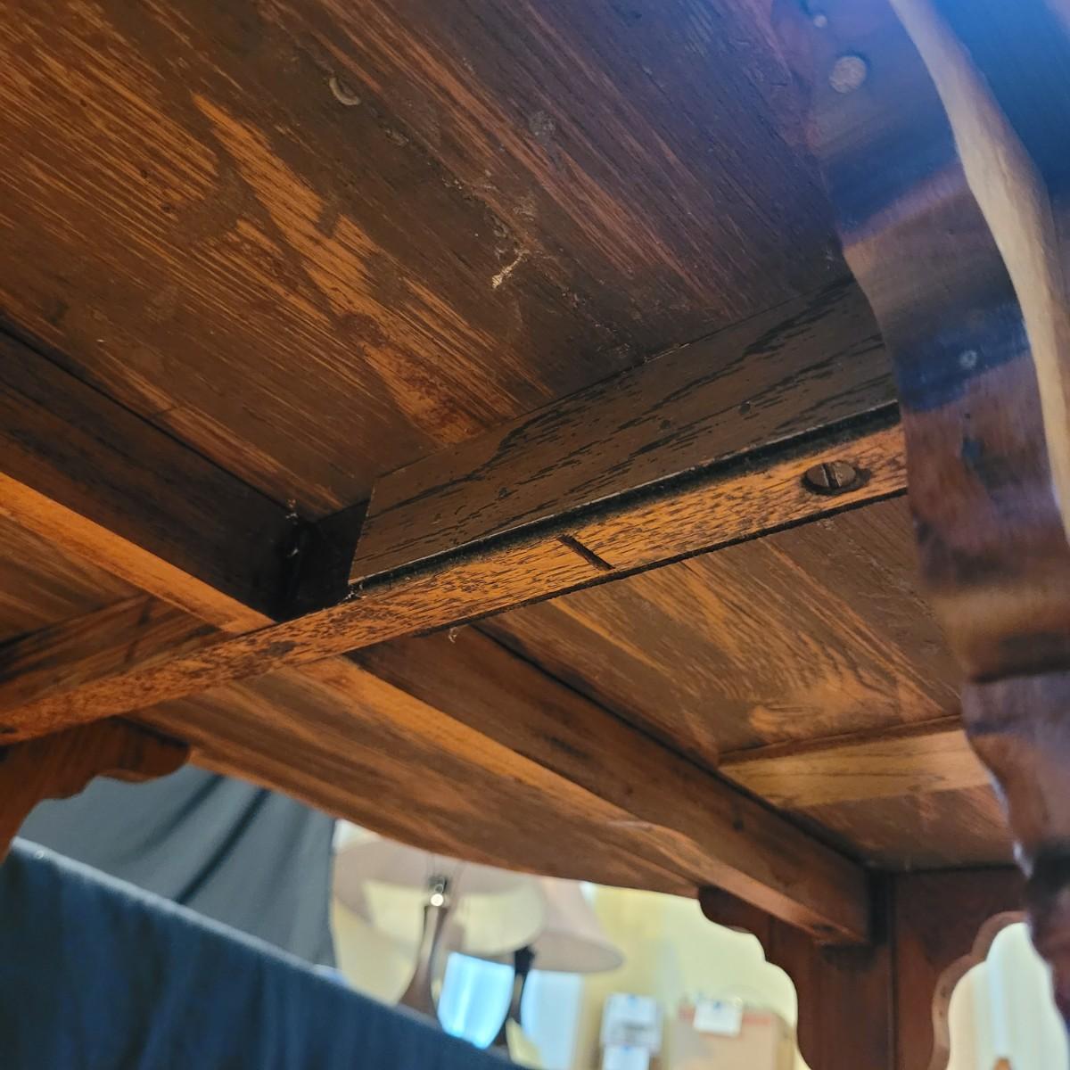 This carved wooden side table has a lower shelf for more display and storage. Legs are slightly wobbly, and wood is split at top of one leg (see photos). Measures approximately 29.5” x 19” x 29”H. Local pick up only.