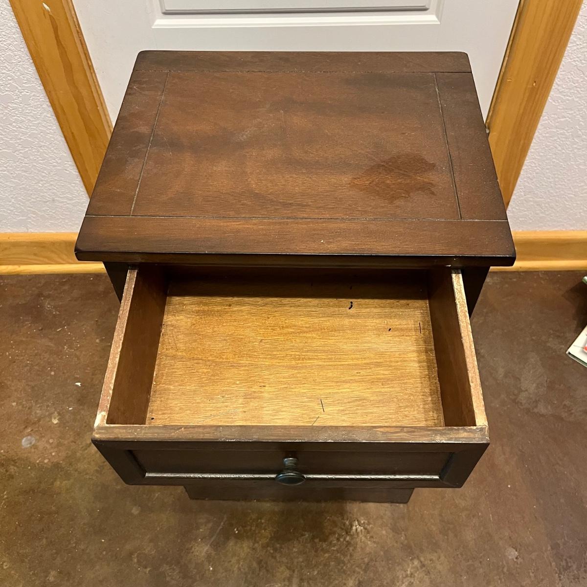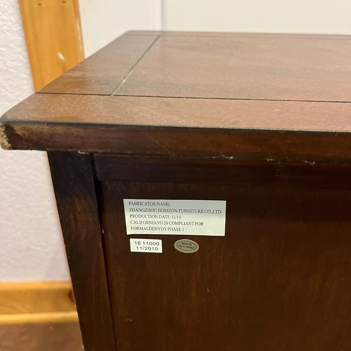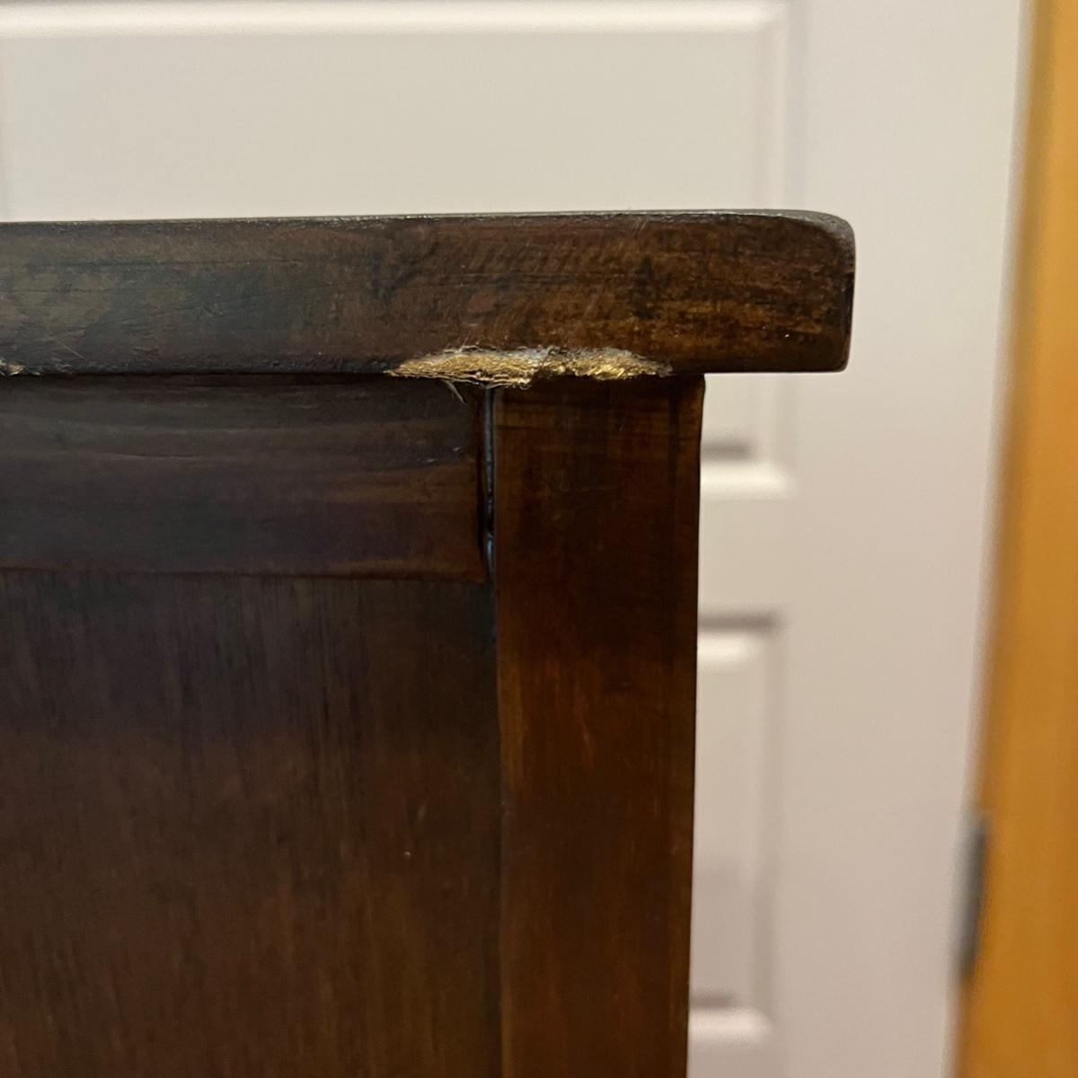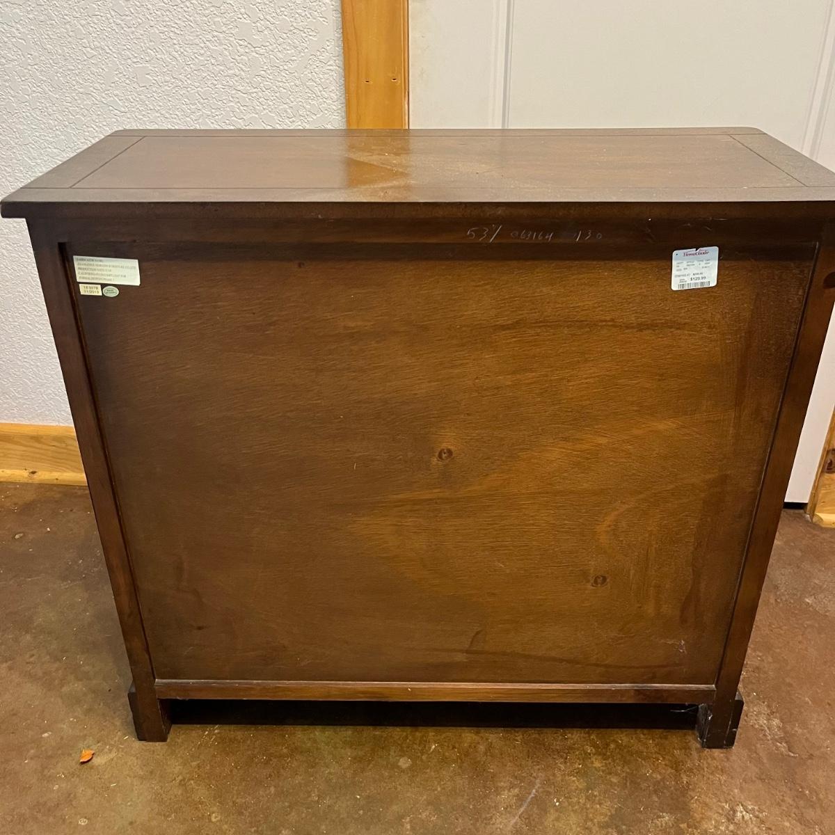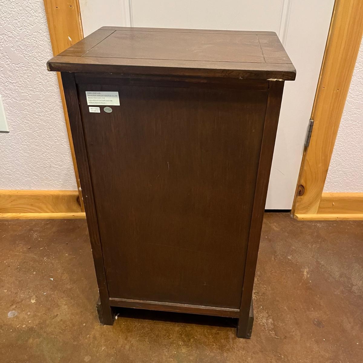 This lot includes one larger side table with ix drawers and one smaller matching side table with three drawers. The tables are made of a lightweight wood and have woven baskets. The baskets are removable. Some of the baskets have snags (see photos). The smaller table has a small chip in the wood on the back and the large table has some tiny scratches on the top (see photos). They are a bit dusty. The larger table measures about 30” x 13” x 27.5”H. Local pickup only.