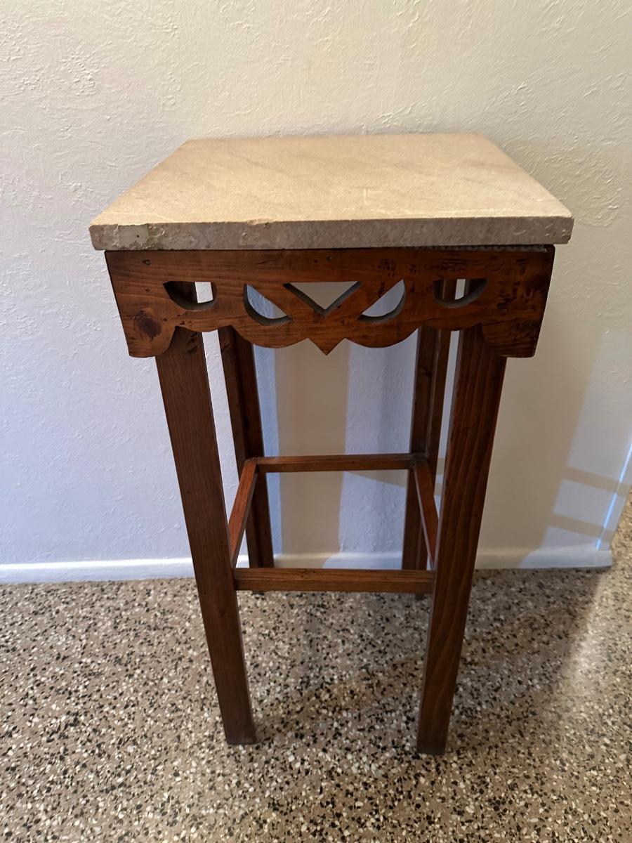 Wooden Side Table with Marble Top