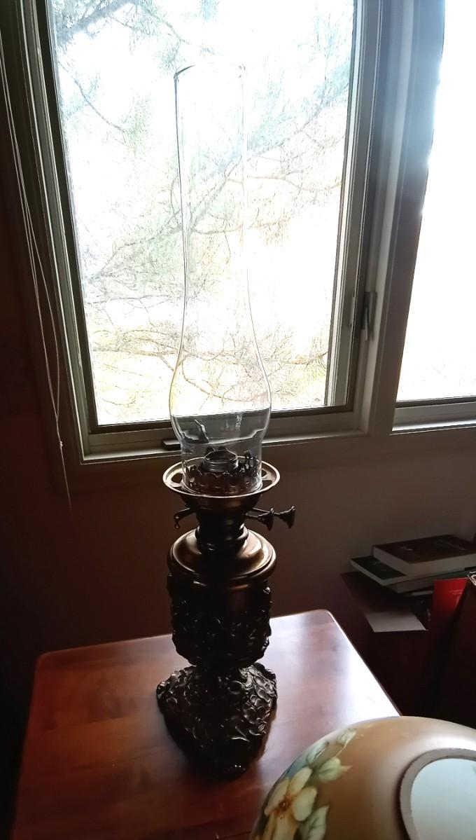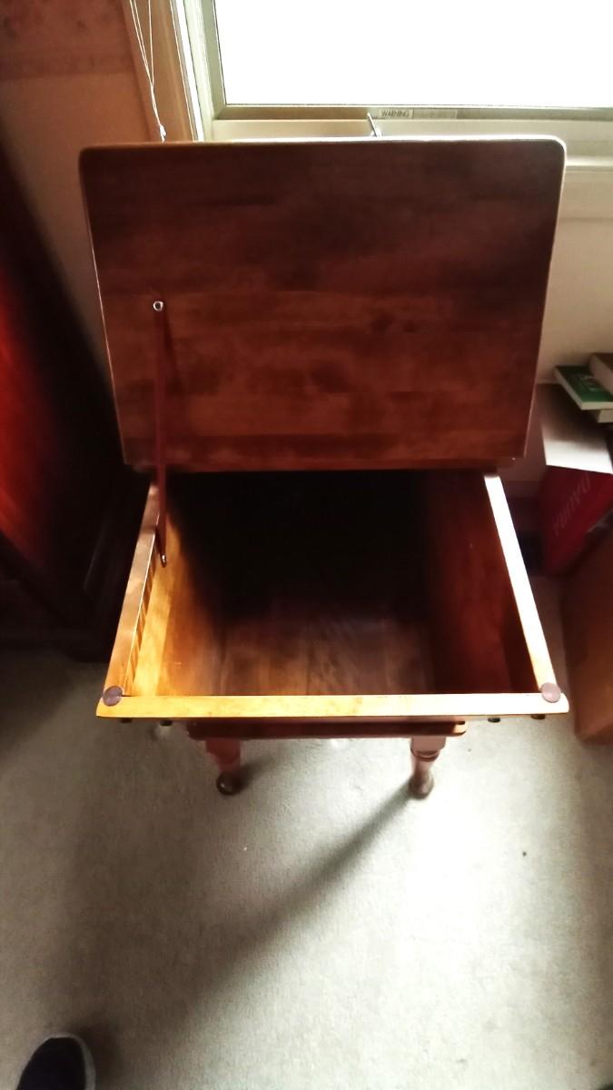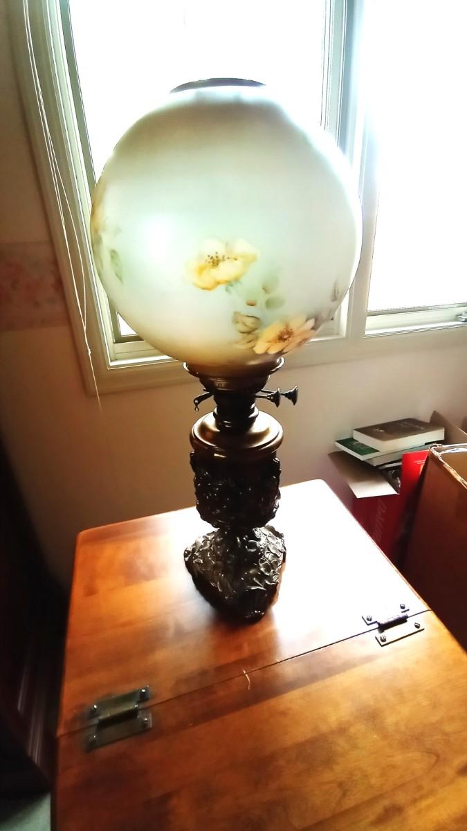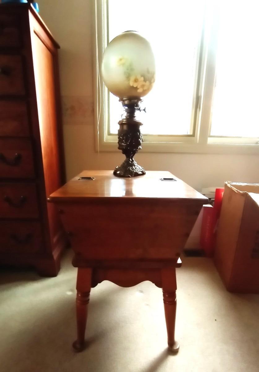 WOODEN SIDE TABLE WITH STORAGE MEASURES APPROX.23X18 AND THE GLOBE LAMP IS APPROX .24" WITH A REMOVABLE SHADE