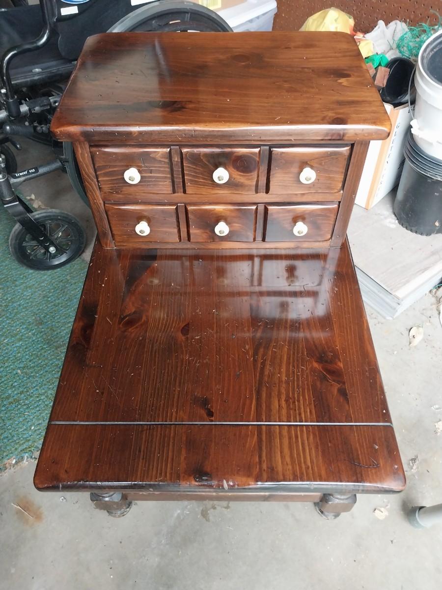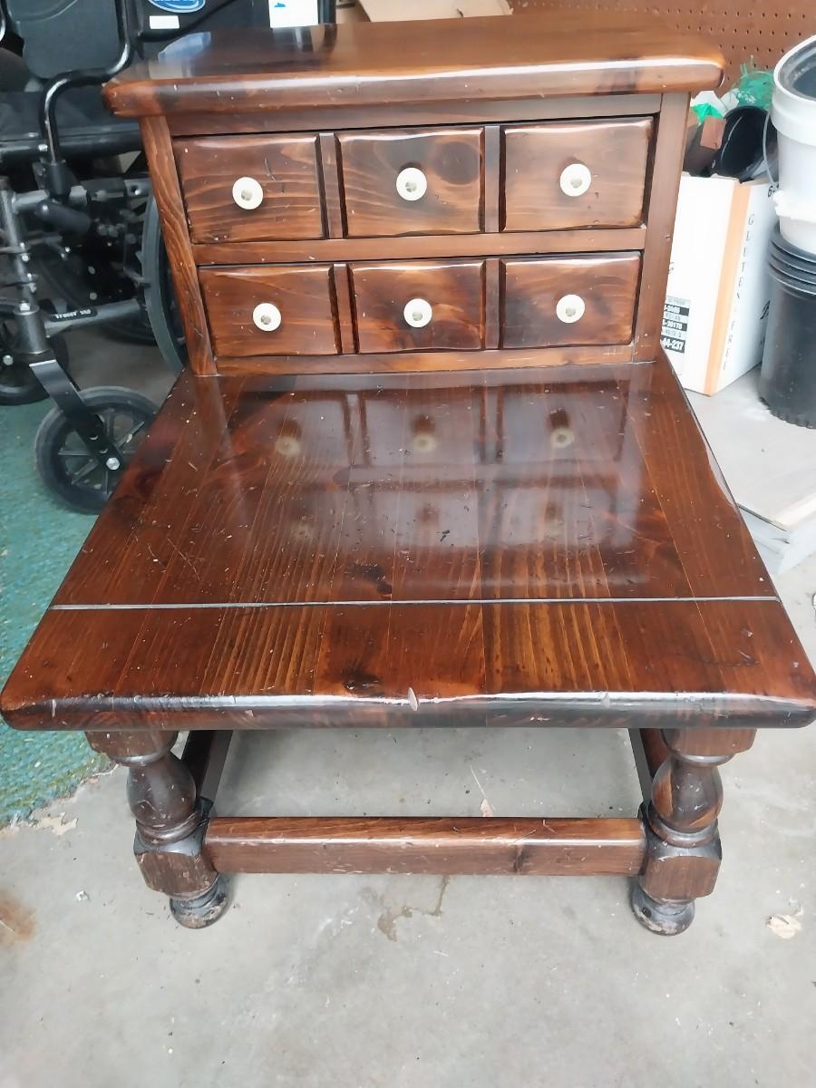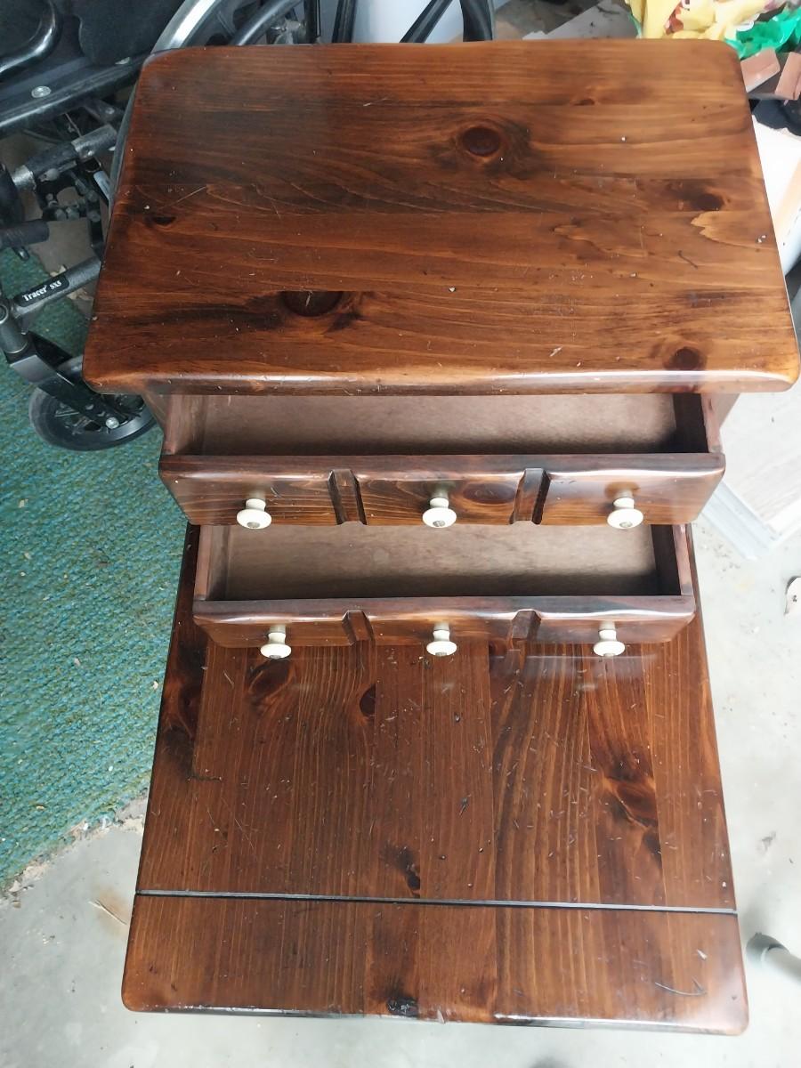 WOODEN SIDE TABLE WITH TWO SMALL DRAWERS