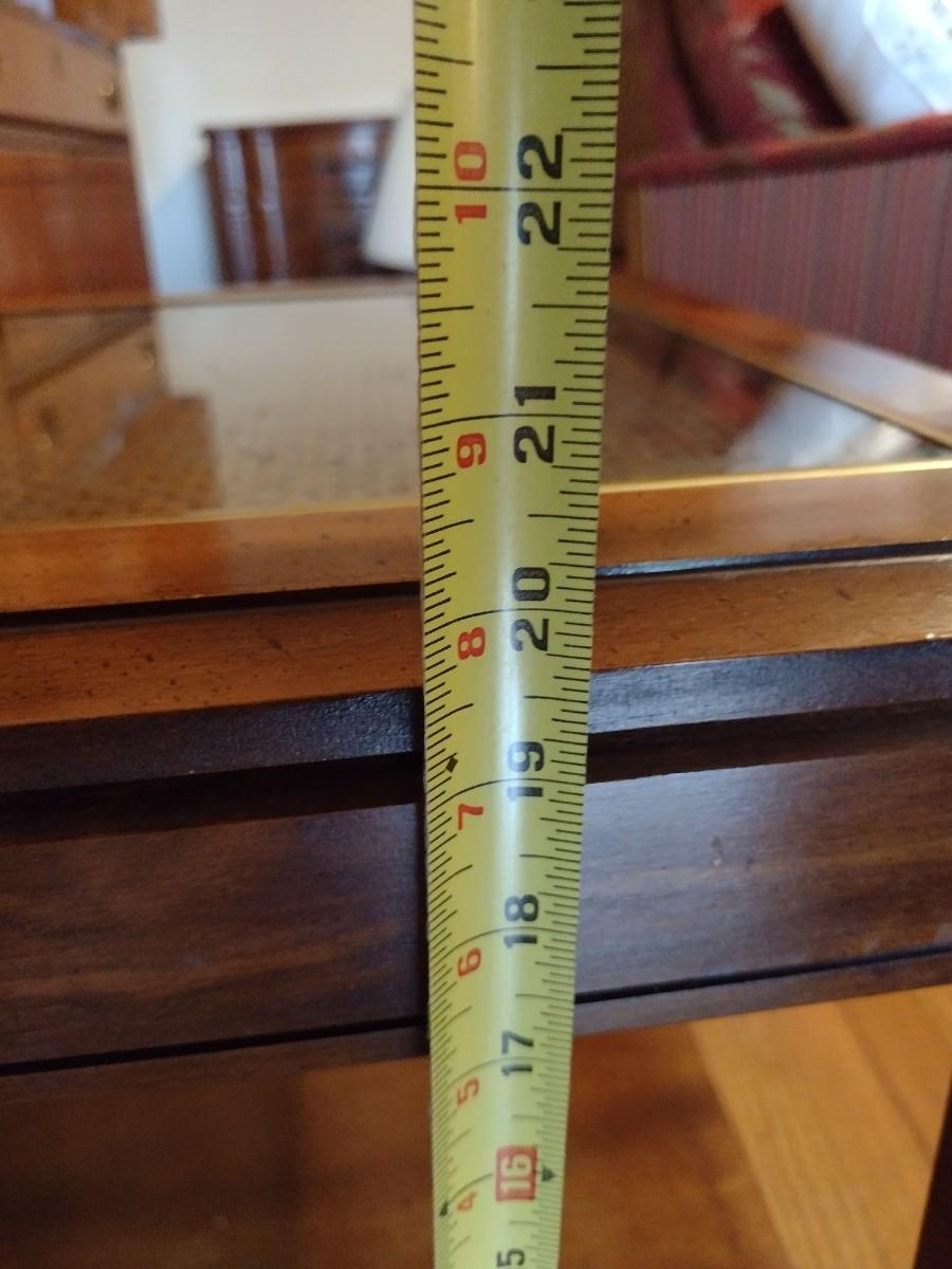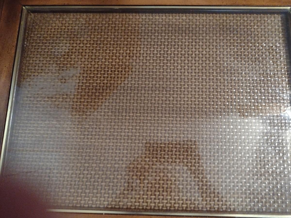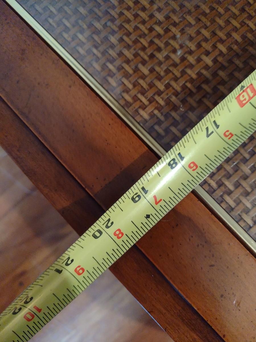 Wooden Side Table with Woven Rattan Insert Under Glass