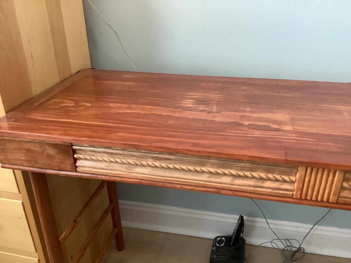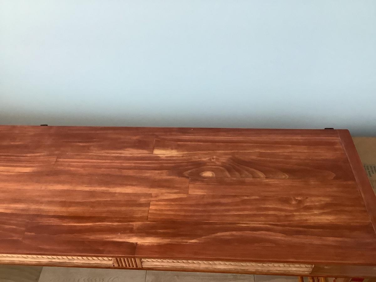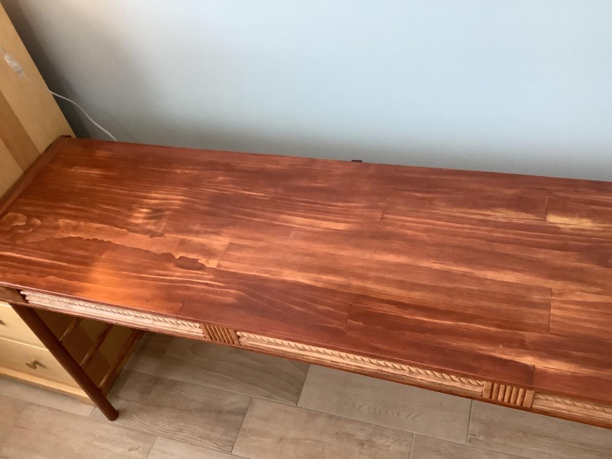 Wooden side/sofa table with bamboo rungs- homemade 74”x18 1/2” 31”H