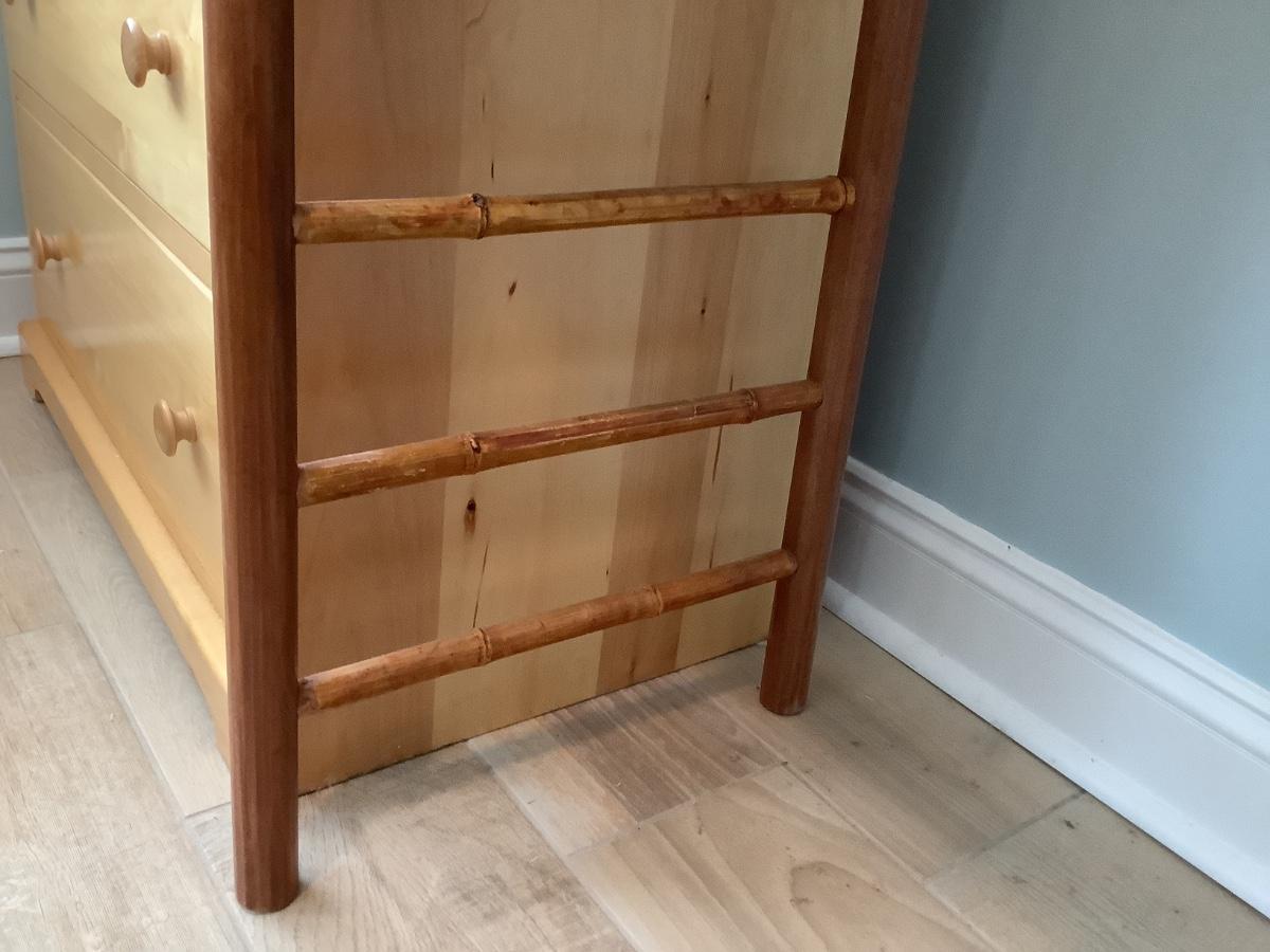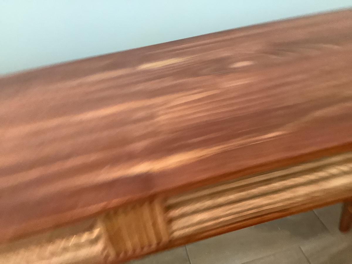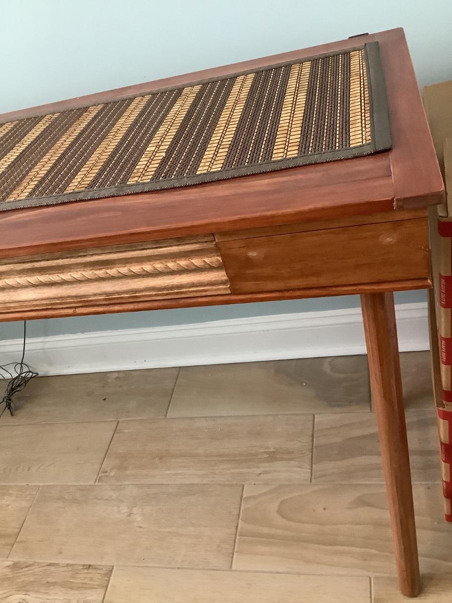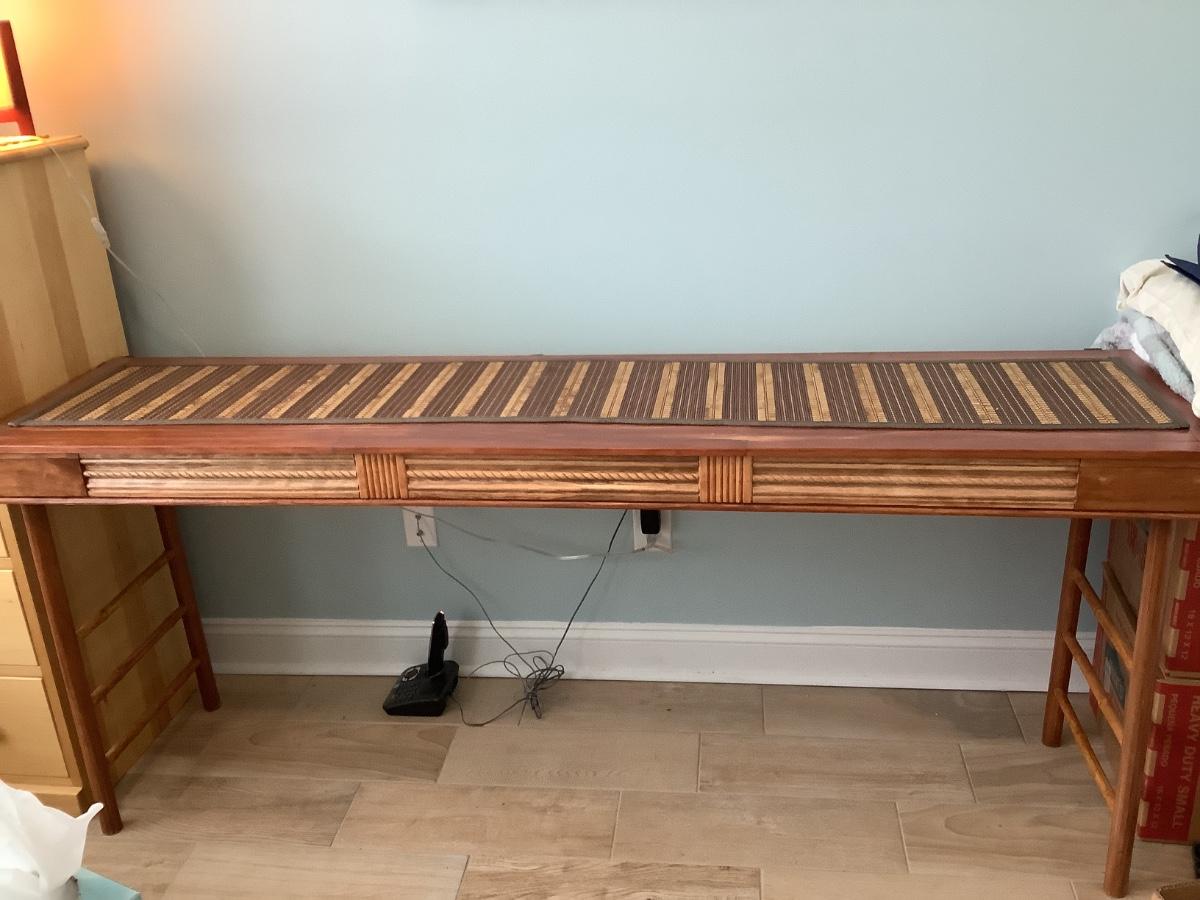 Wooden side/sofa table with bamboo rungs- homemade 74”x18 1/2”  31”H