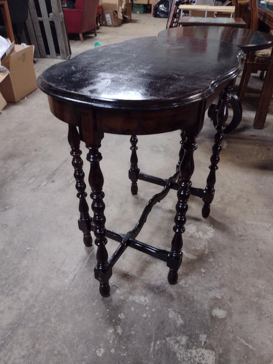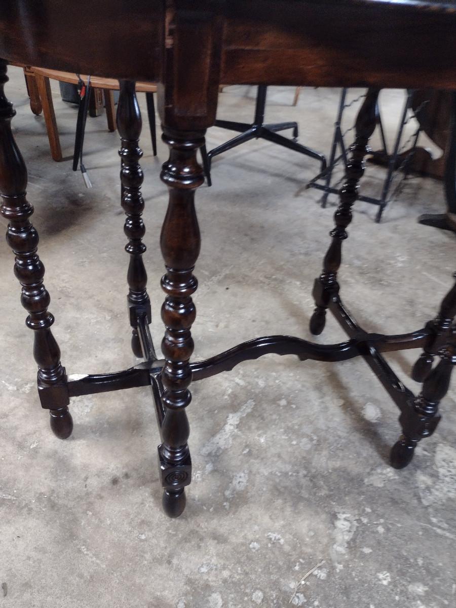 Wooden Six Leg Parlor Table. Please see all pictures for condition of finish.