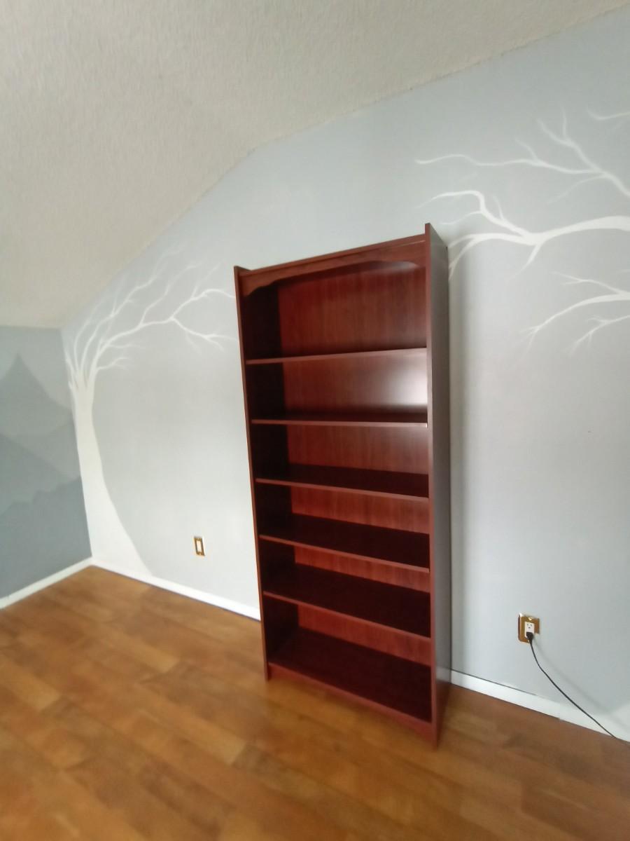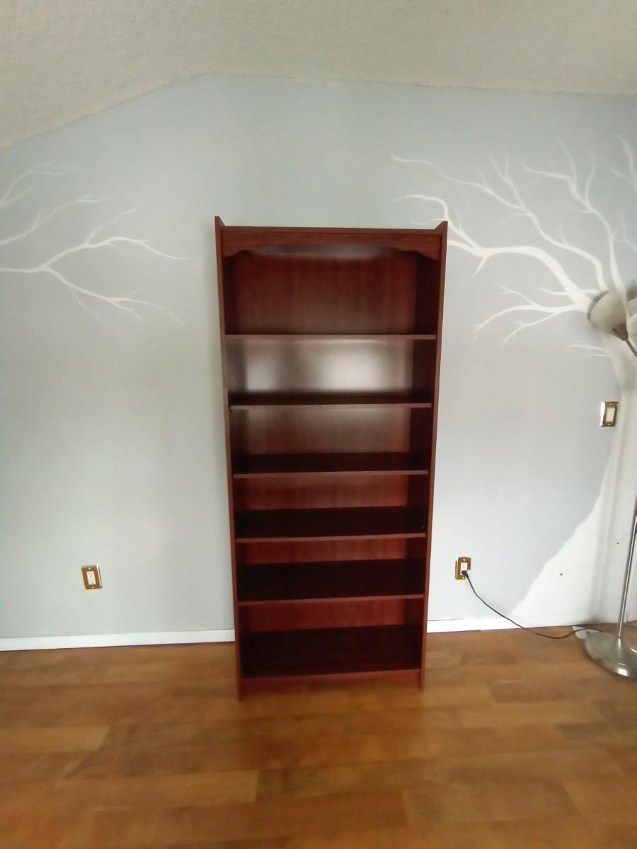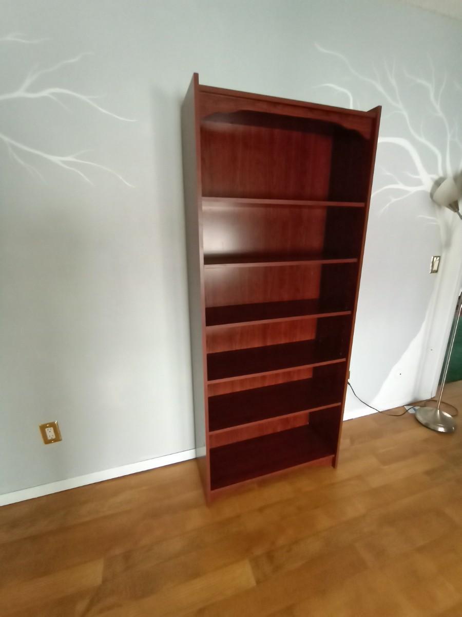 WOODEN SIX SHELF BOOKCASE MEASURES APPROX, 30X12X73