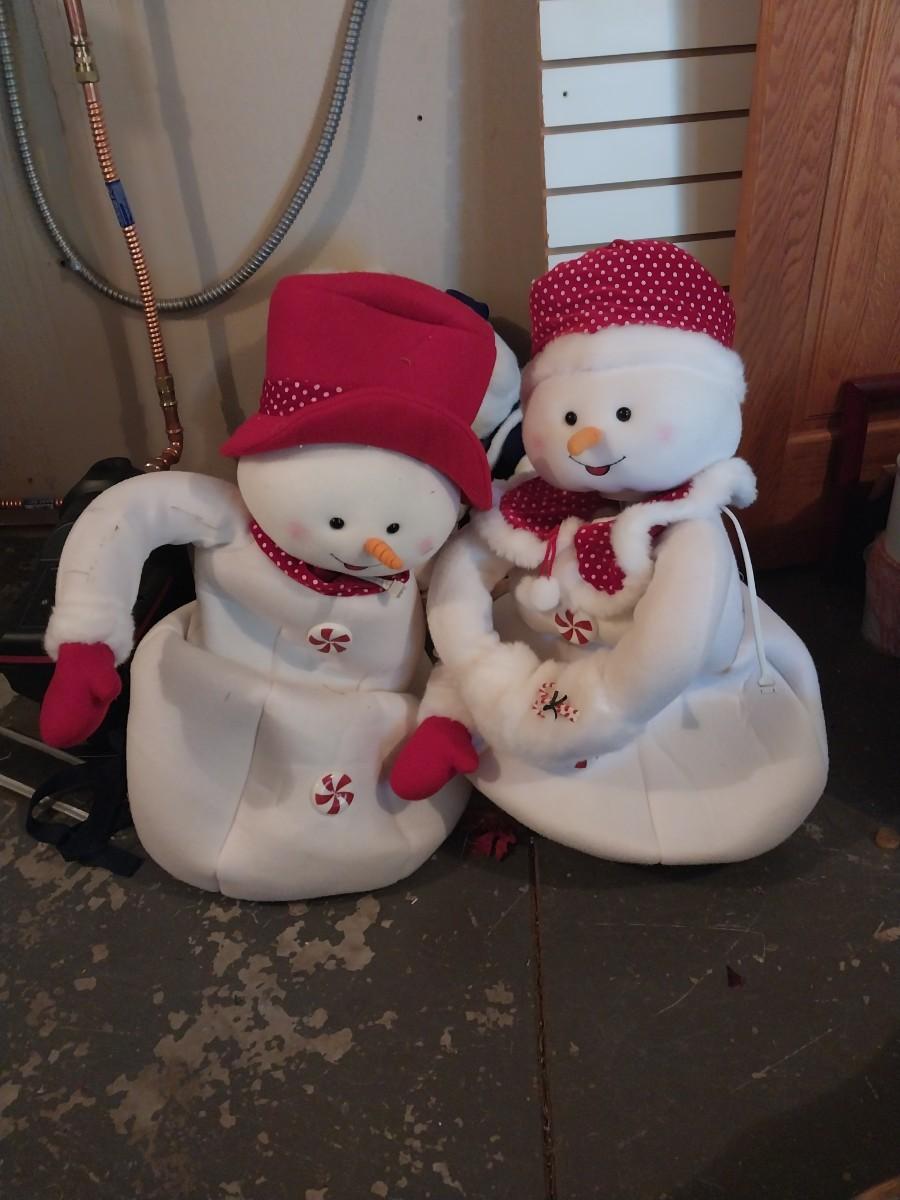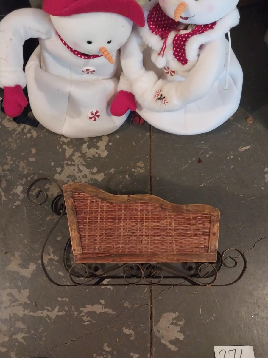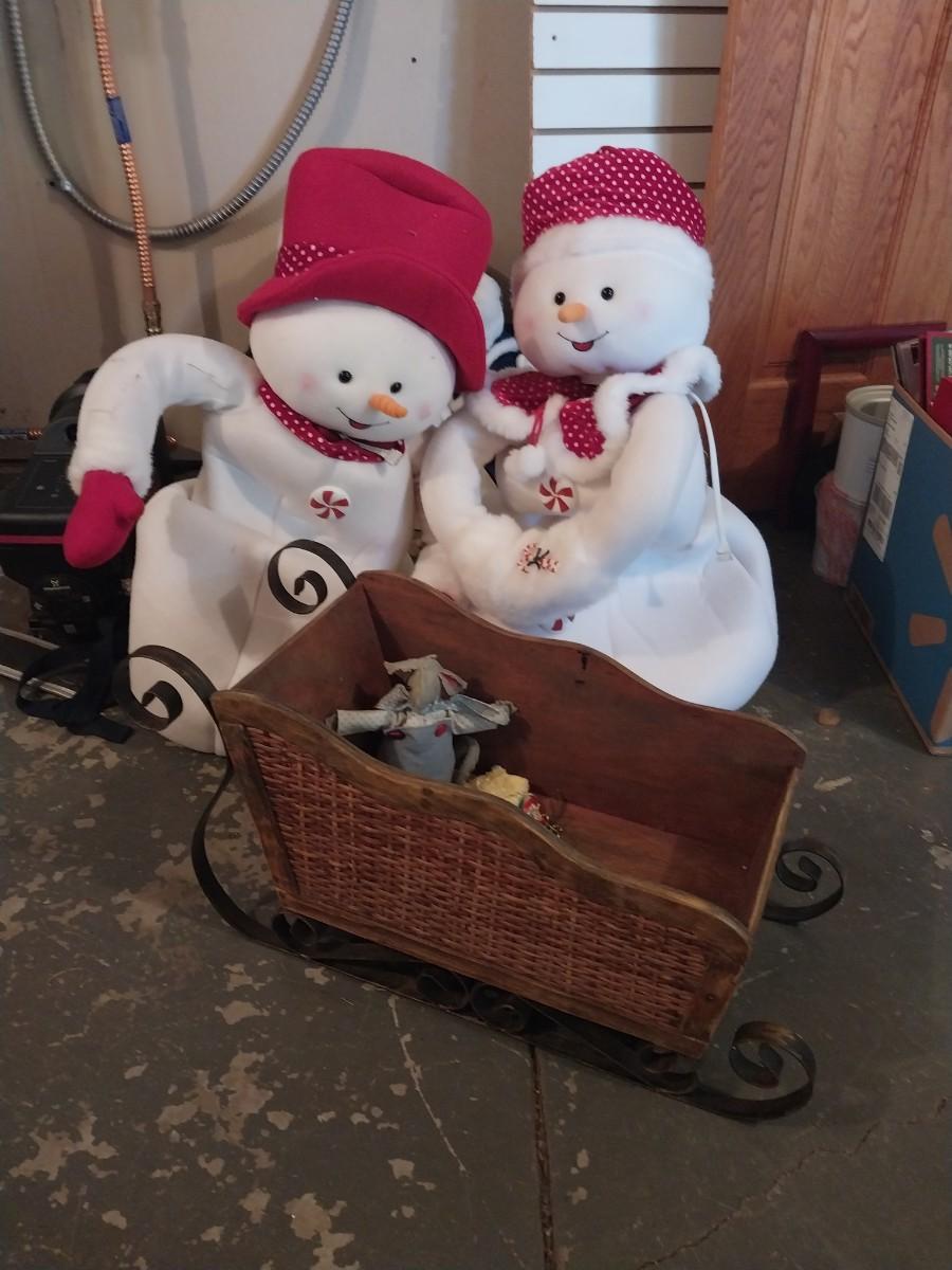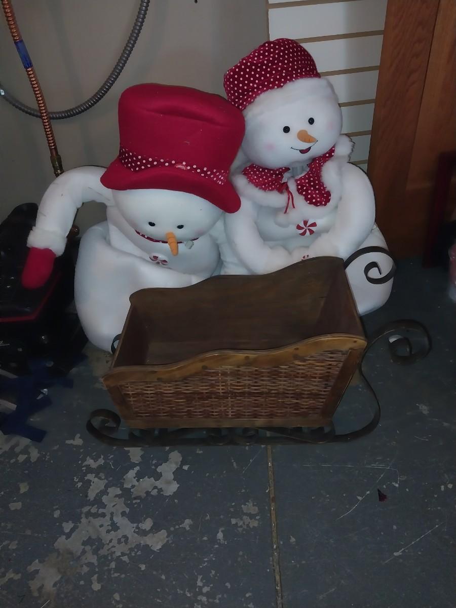 WOODEN SLEIGH AND TWO STANDUP SNOWMEN