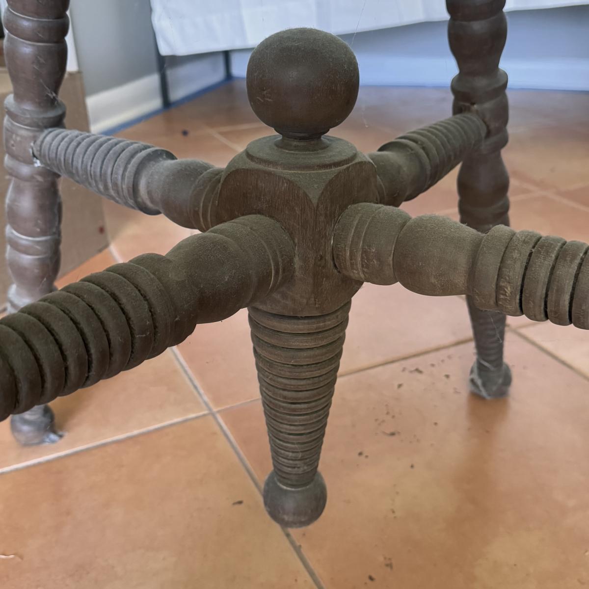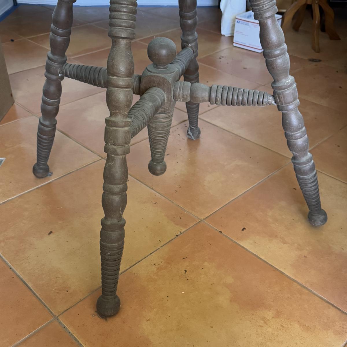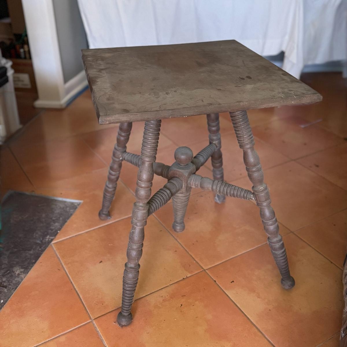 Lot includes one wooden spindle leg parlor table with lots of character. The table has a few signs of wear, mainly being fading on the wood - see pictures. The table measures 23” x 23.95” x 29”H. Local pickup only.