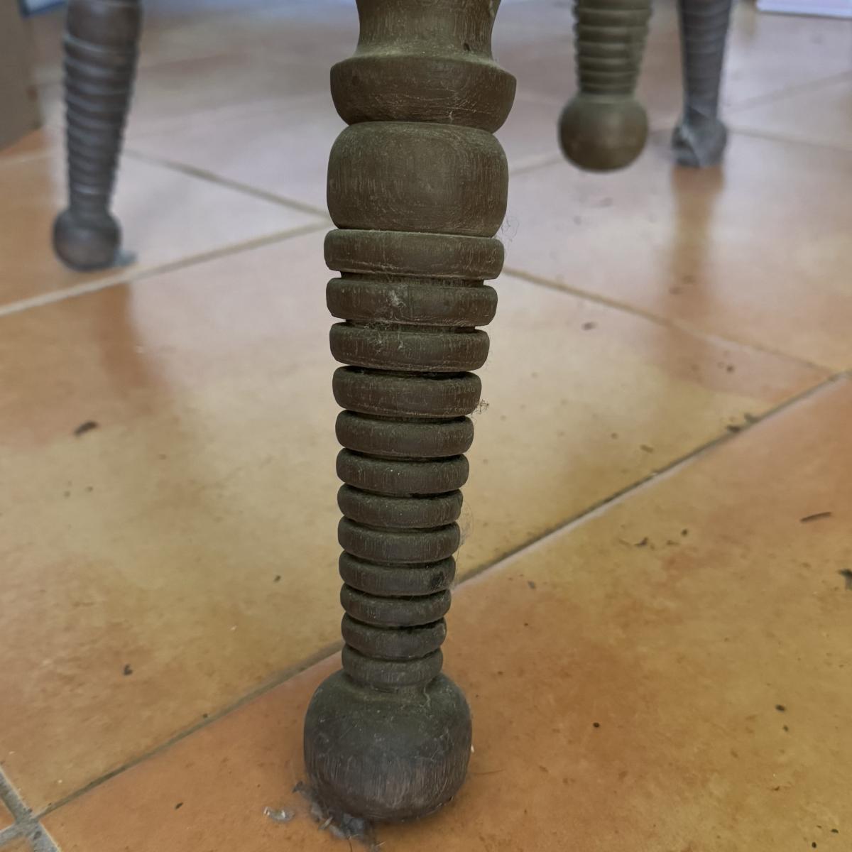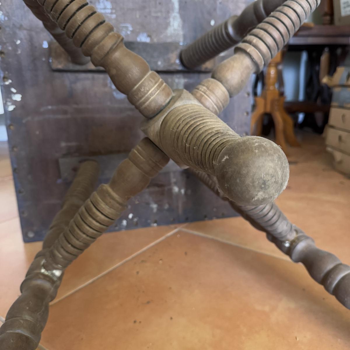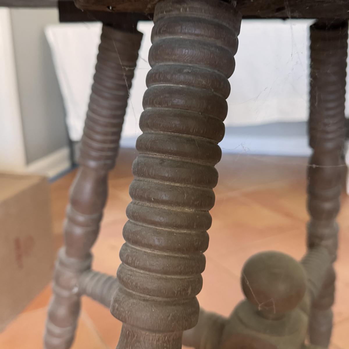 Lot includes one wooden spindle leg parlor table with lots of character. The table has a few signs of wear, mainly being fading on the wood - see pictures. The table measures 23” x 23.95” x 29”H. Local pickup only.