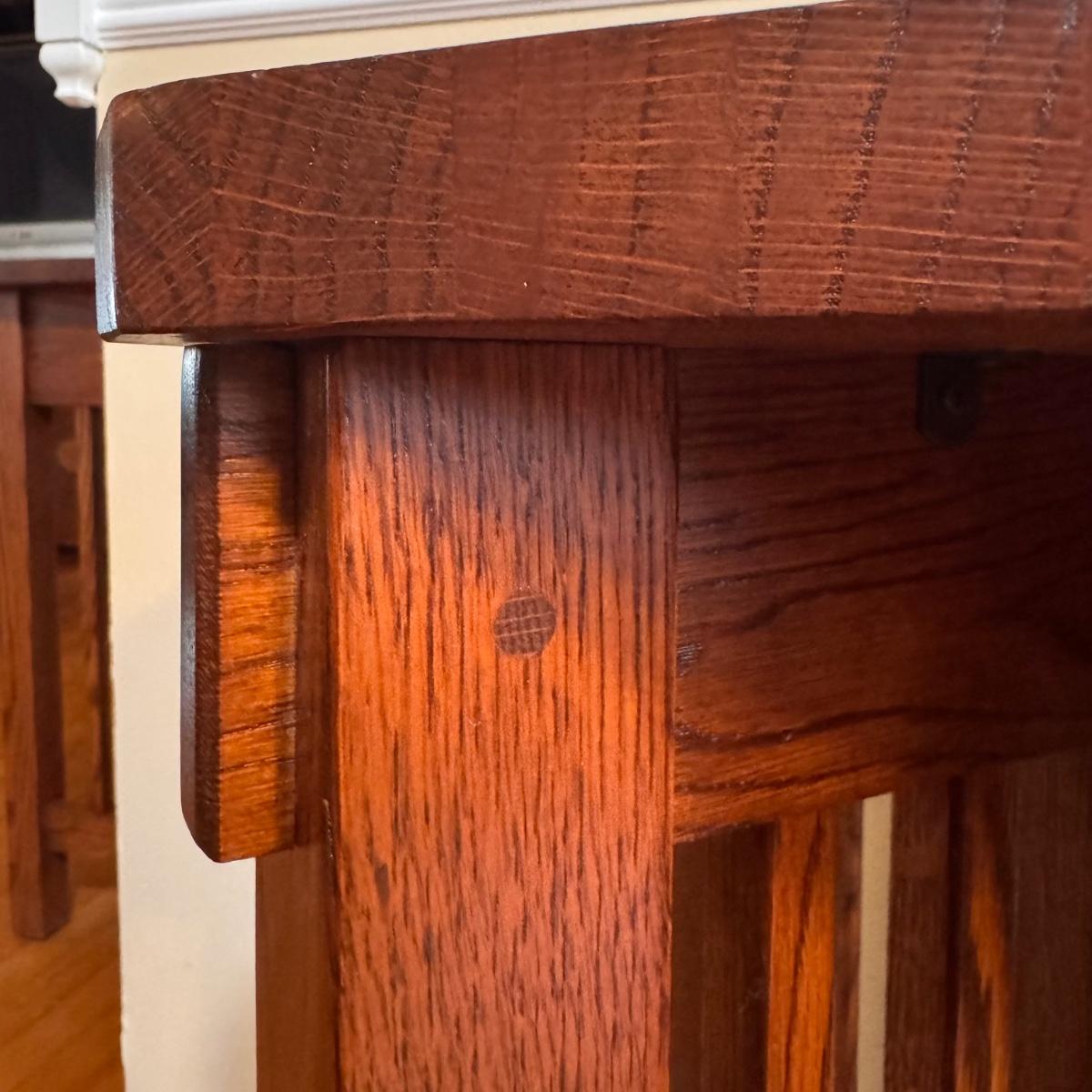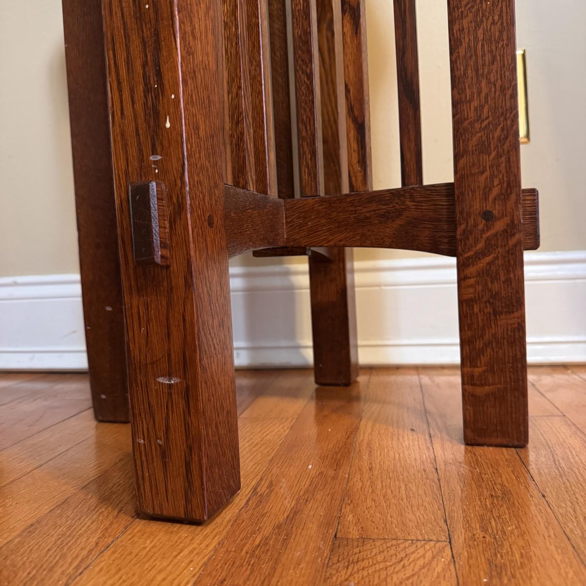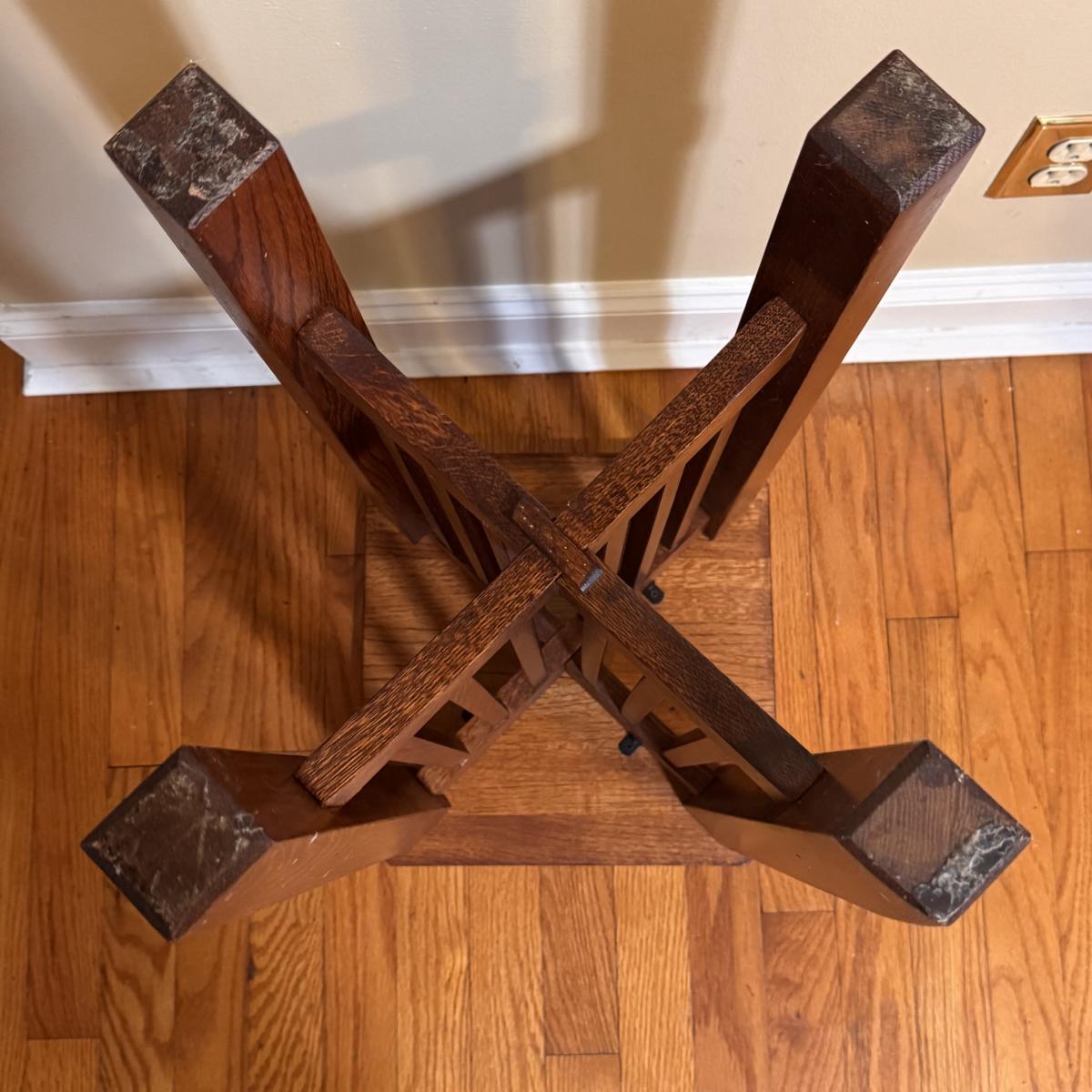 Lot includes one unique solid wooden spindle side table or plant stand. This piece features a slatted interior, with detail at every corner. The side table/plant stand measures 13” x 13” x 27.5”H. There are a few tiny white speckled paint marks on the stand - see picture included. Local pickup only.