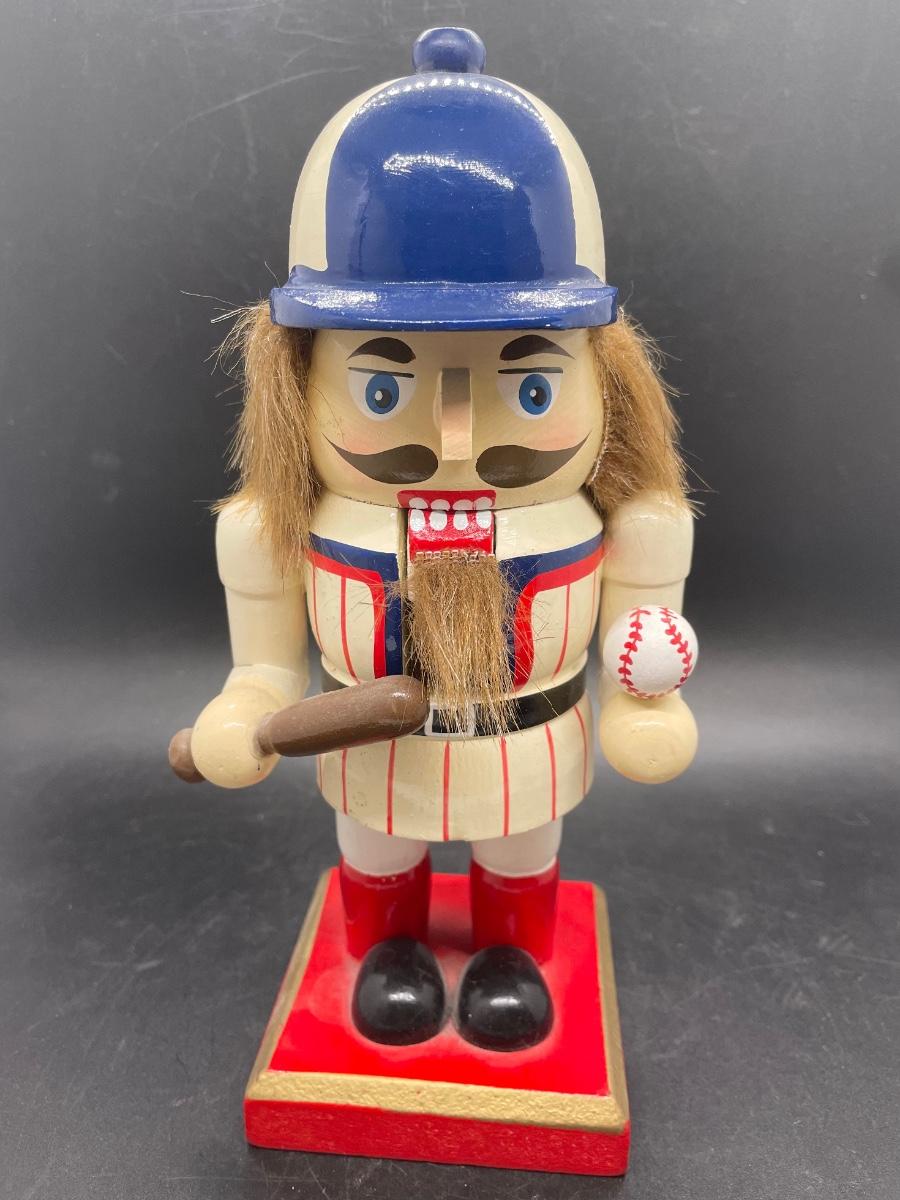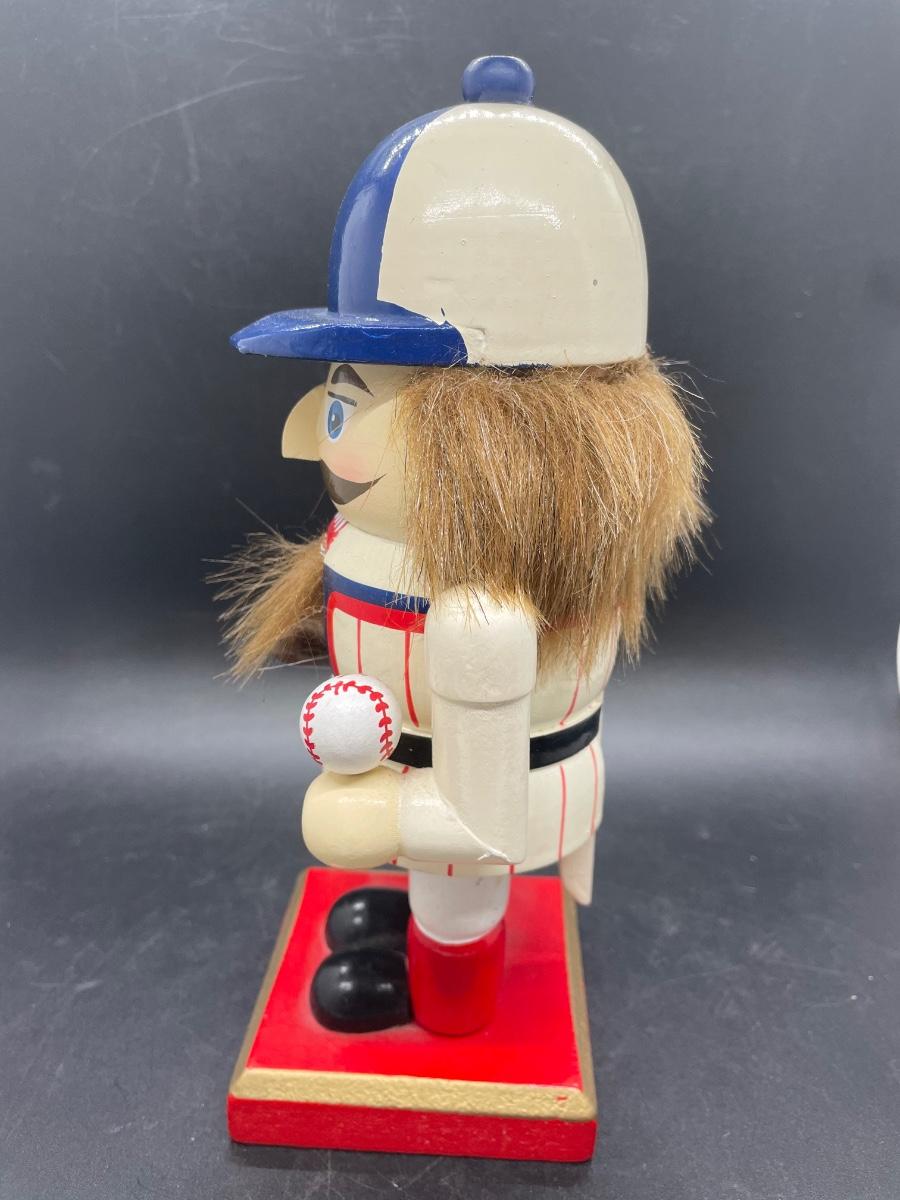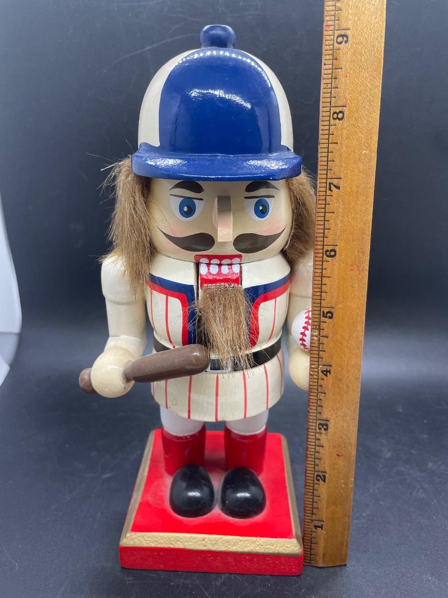 This nutcracker is in great condition. It has no noticeable damages to it, just small spots of discoloration here and there. The item is approximately 9” tall. It was made in Taizhou, Zhejiang, China.