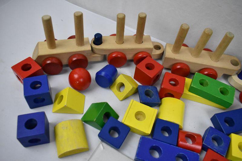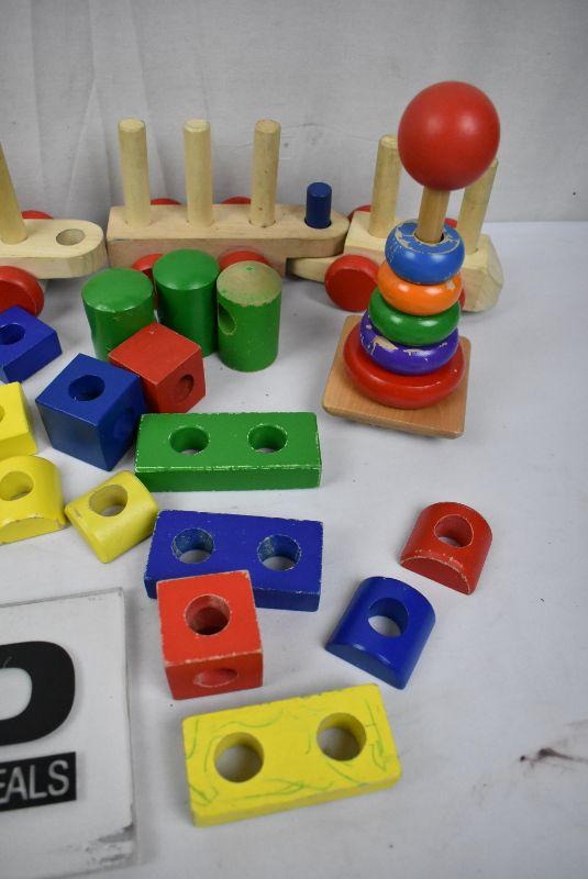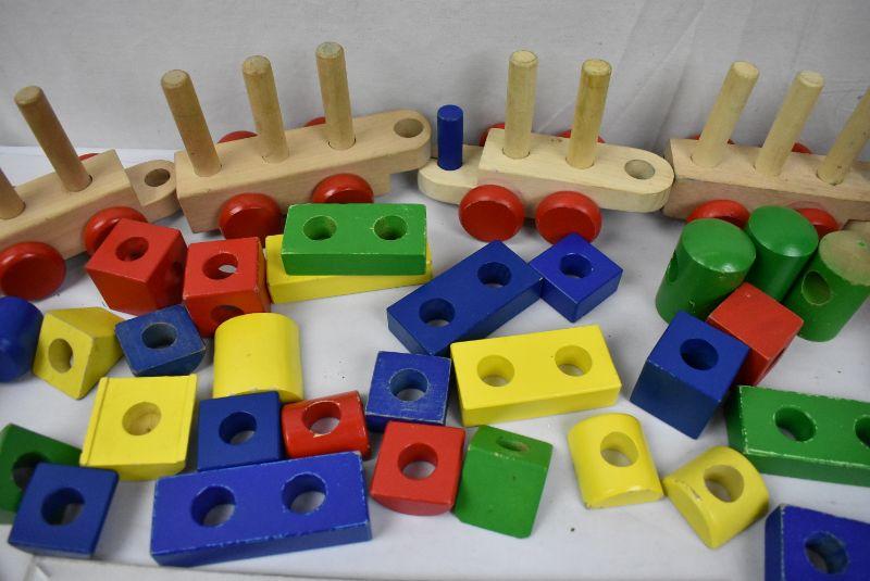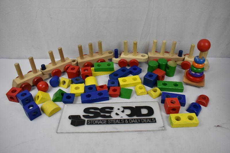 Wooden Stacking Toys. 6 trains, 1 tower, 50+ pieces
