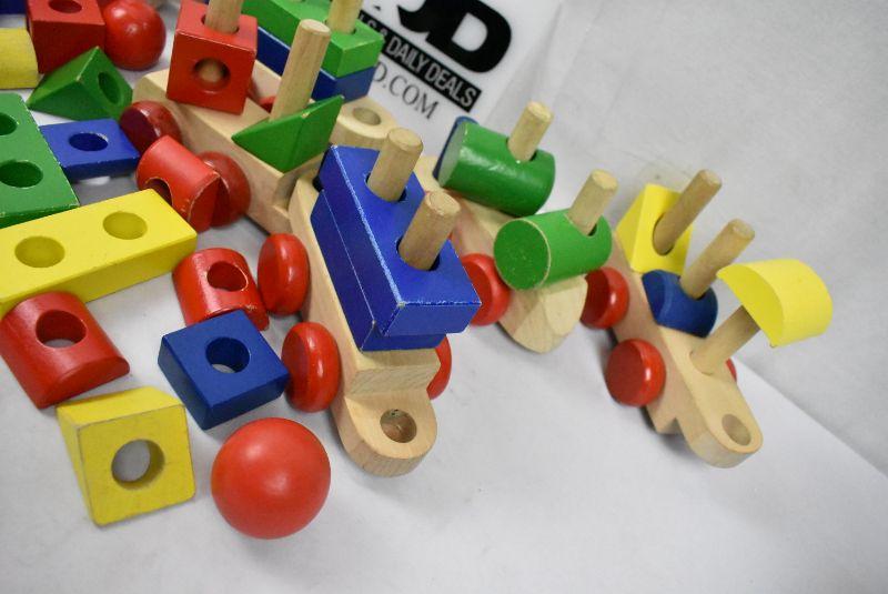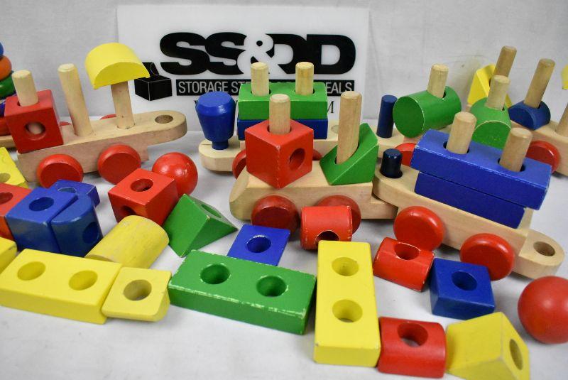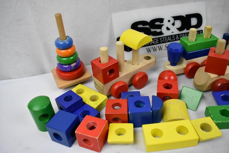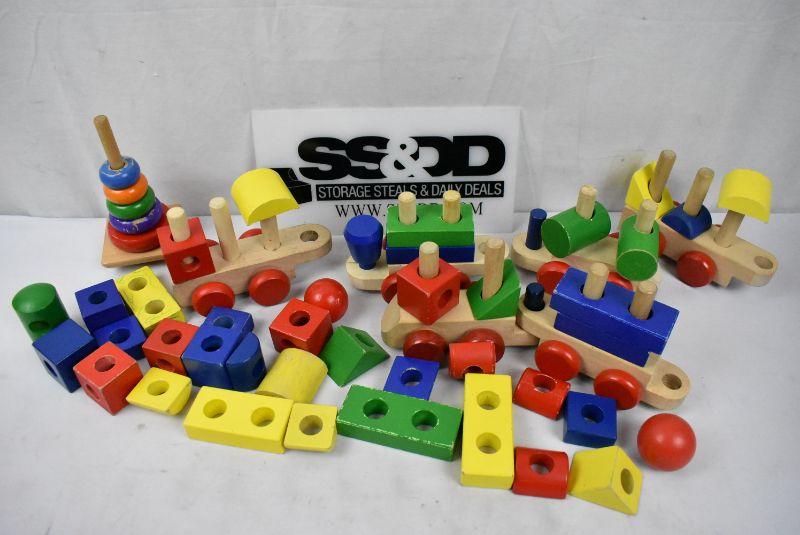 Wooden Stacking Toys. 6 trains, 1 tower, 50+ pieces