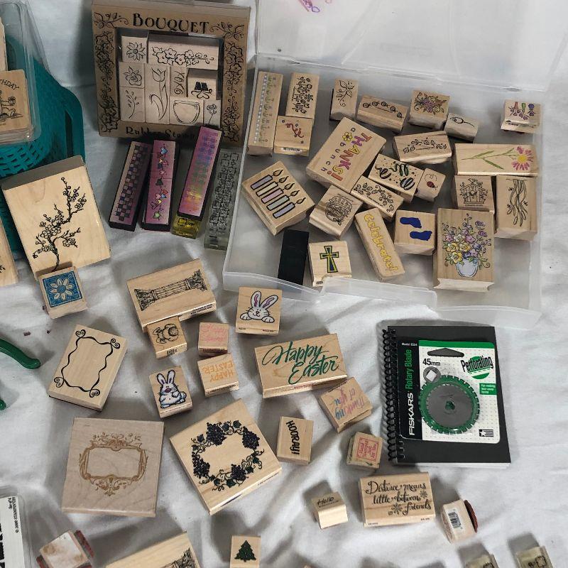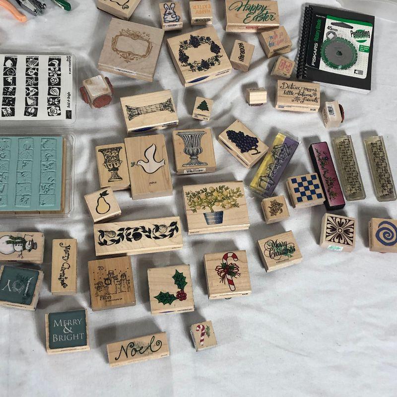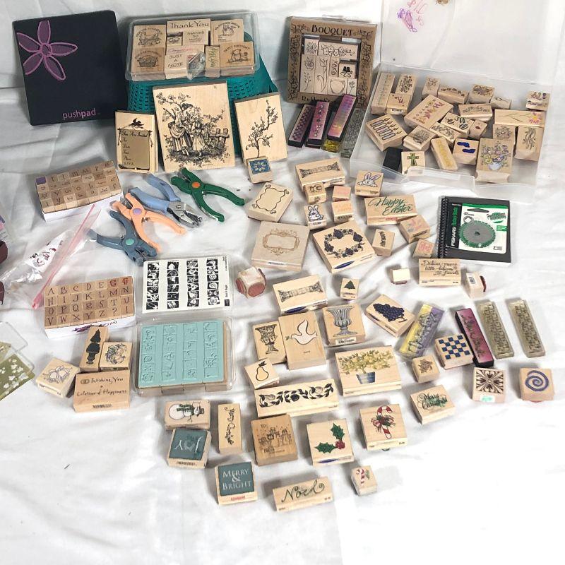 Lot 35 ~ Wooden Stampin-up craft stamps ~ Scrapbooking Supplies with drawer bin