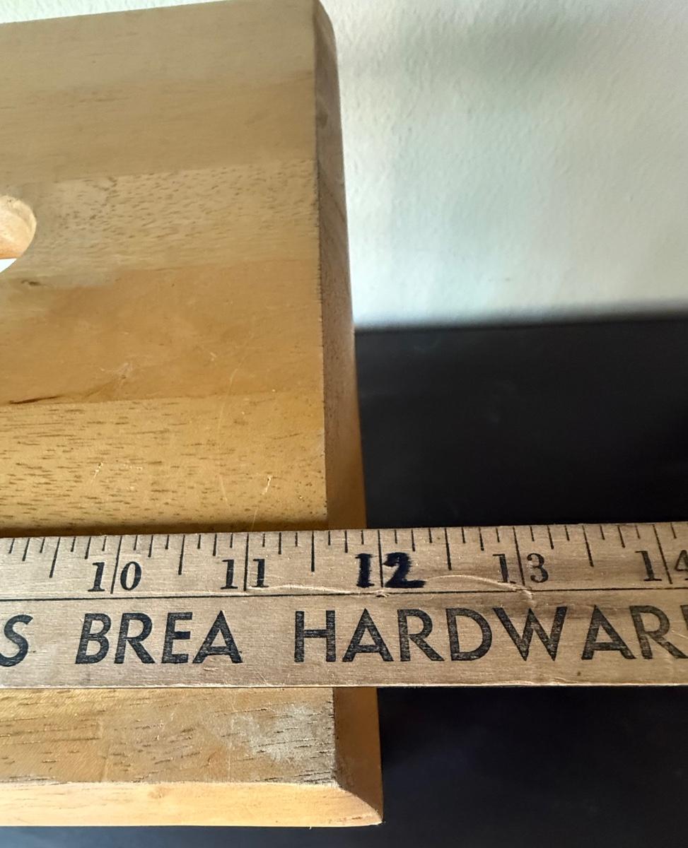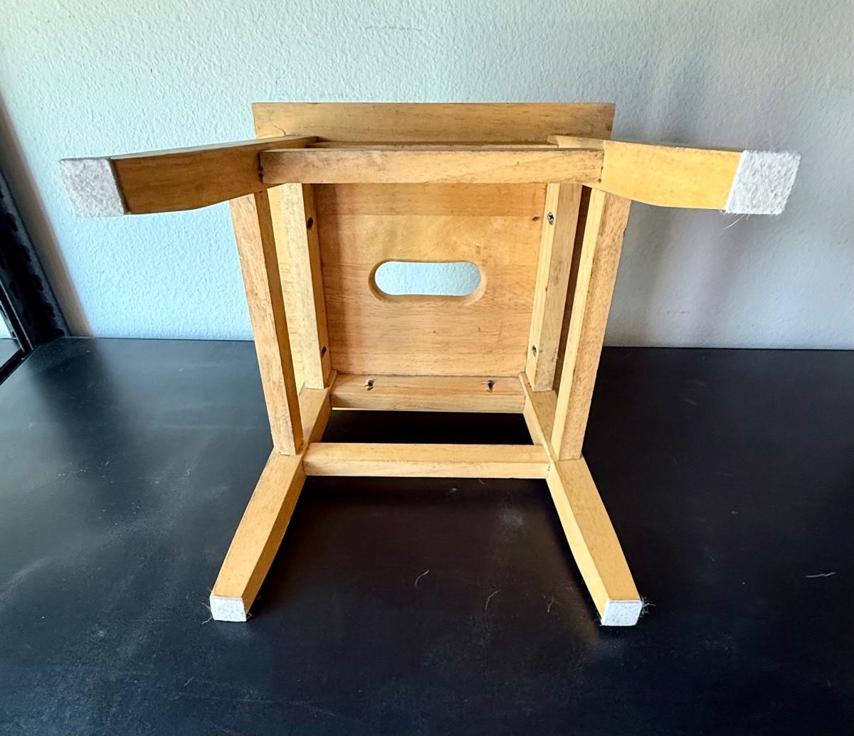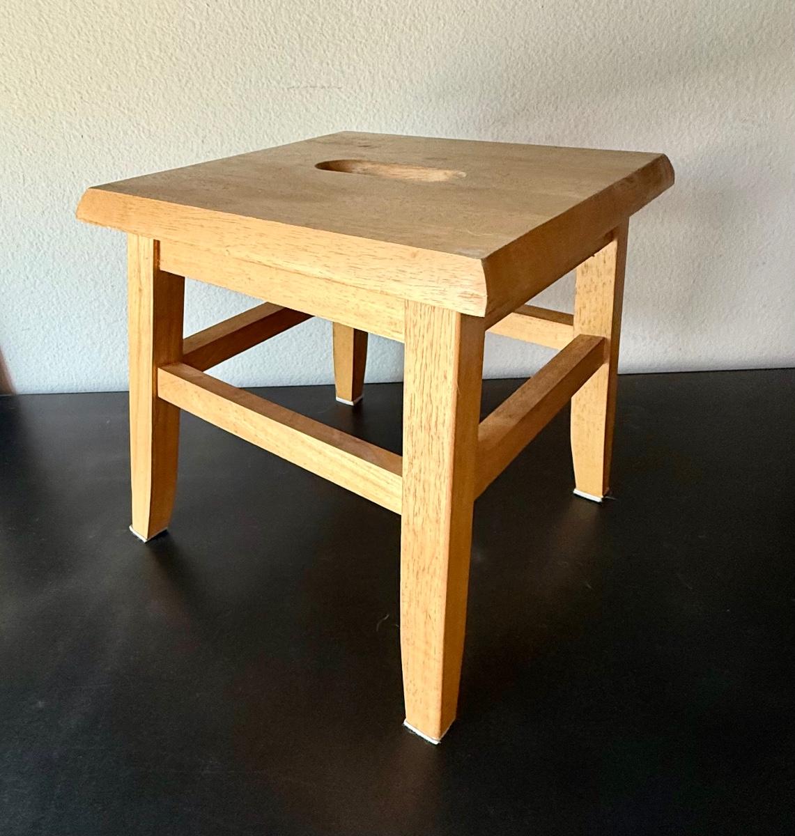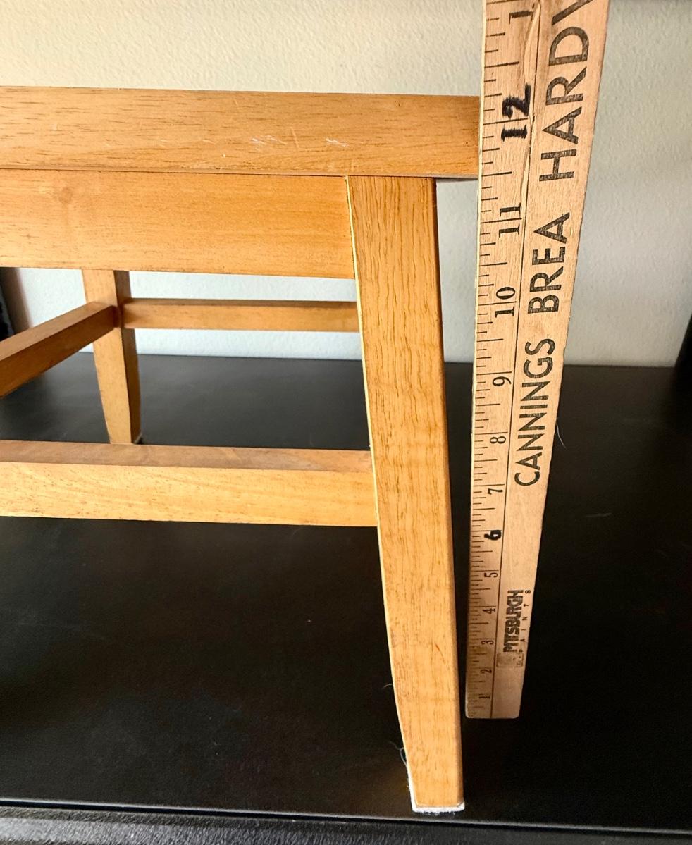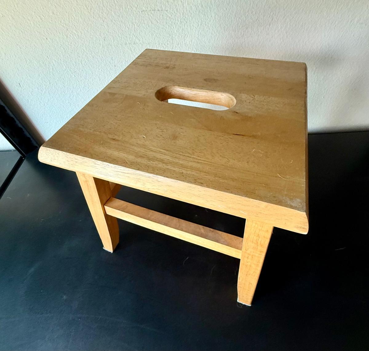 Sturdy, solid wood step stool. Approx. 12" tall, top step measures approx. 12" x 12". Great condition.