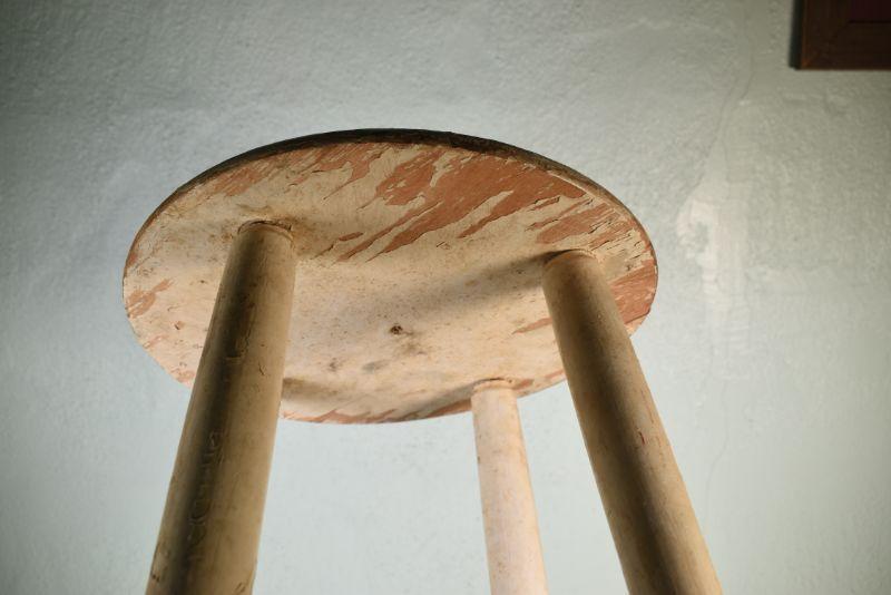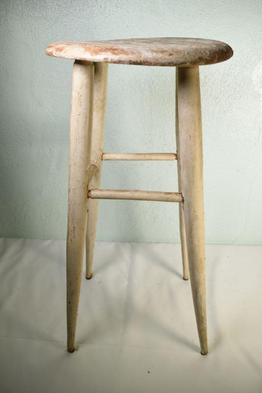 Vintage wooden stool with chippy paint, would make a nice plant stand
