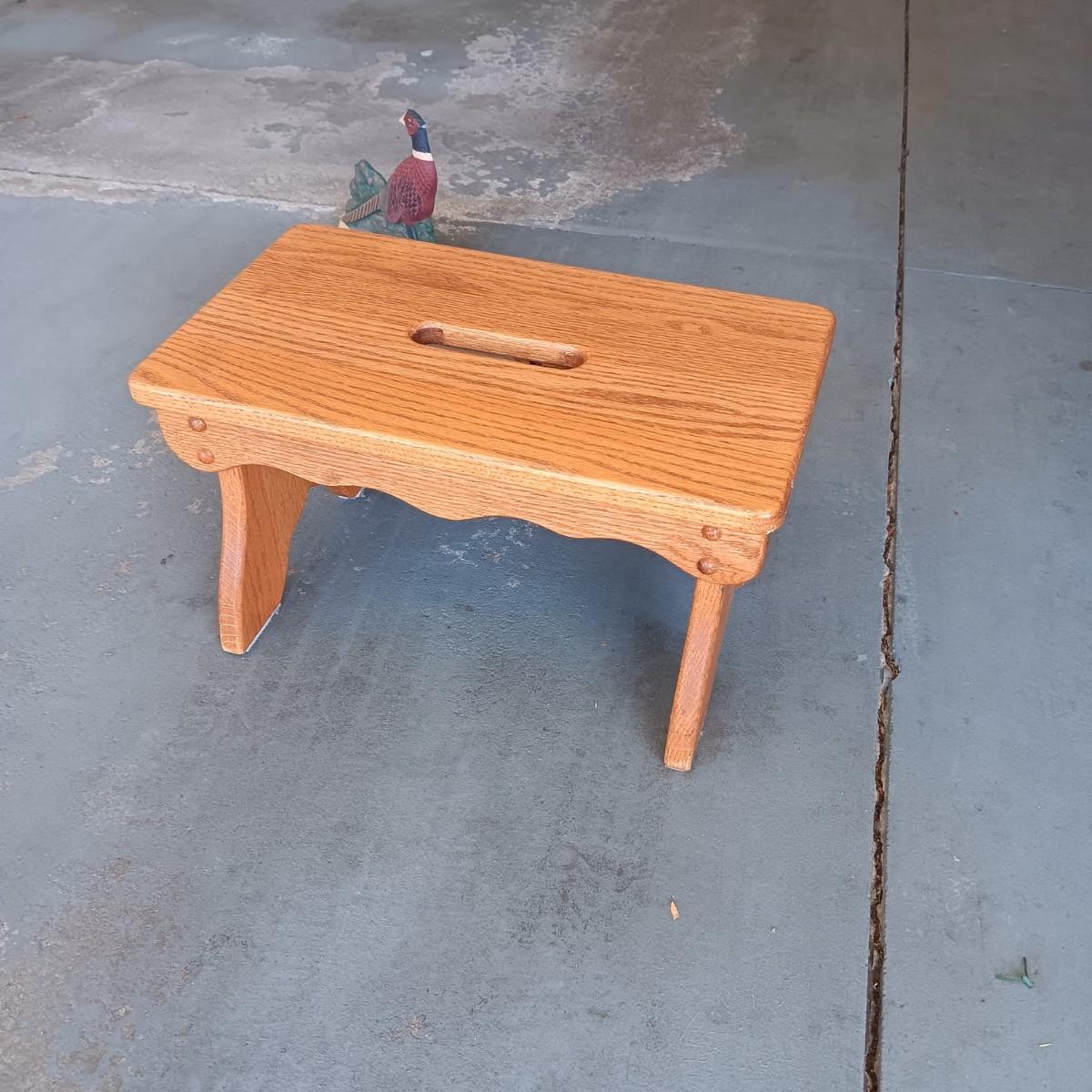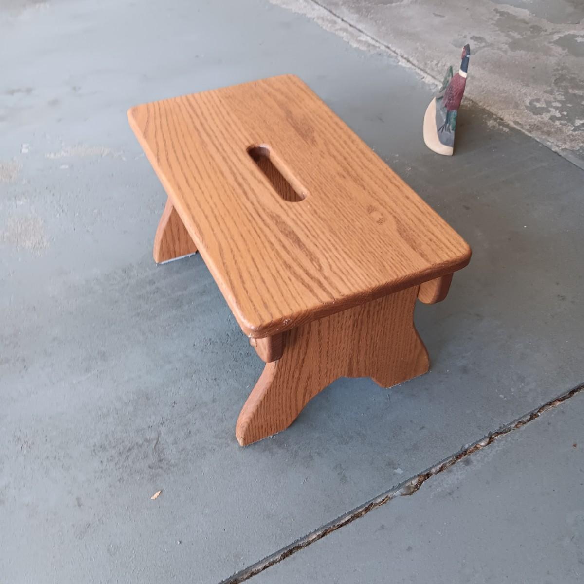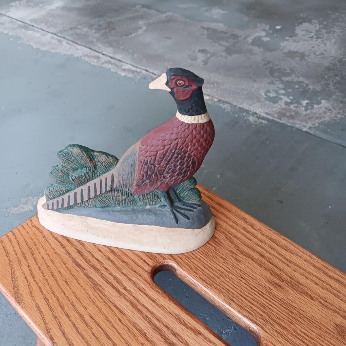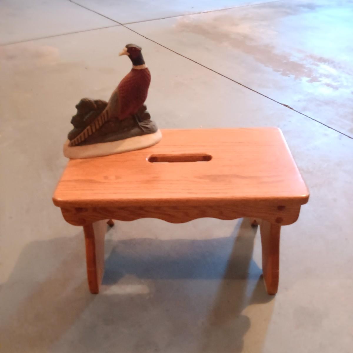 WOODEN STOOL AND A CAST IRON PHEASANT DOOR STOP