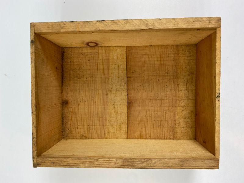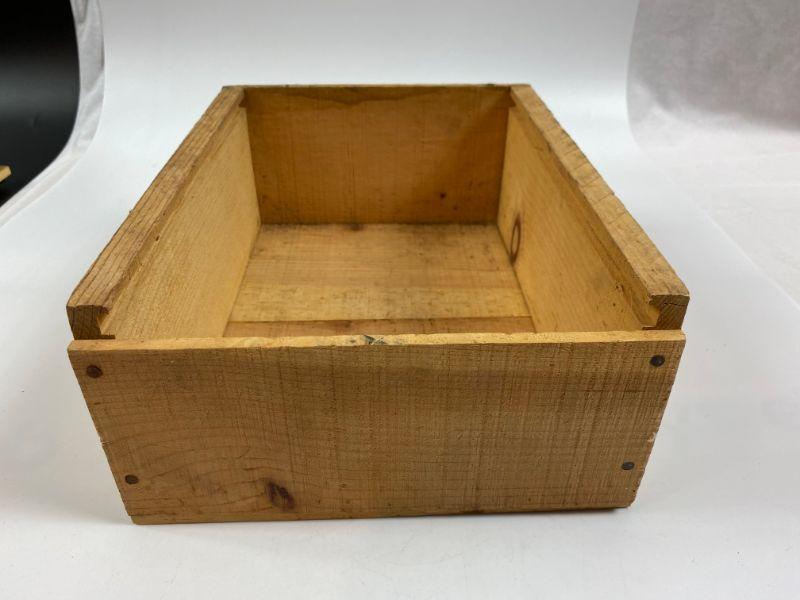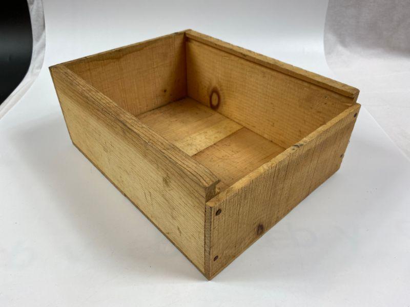 Wooden storage box missing cover.