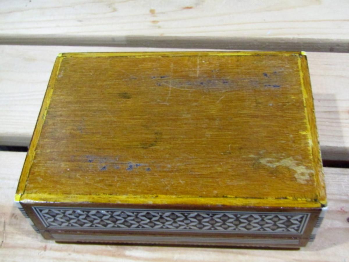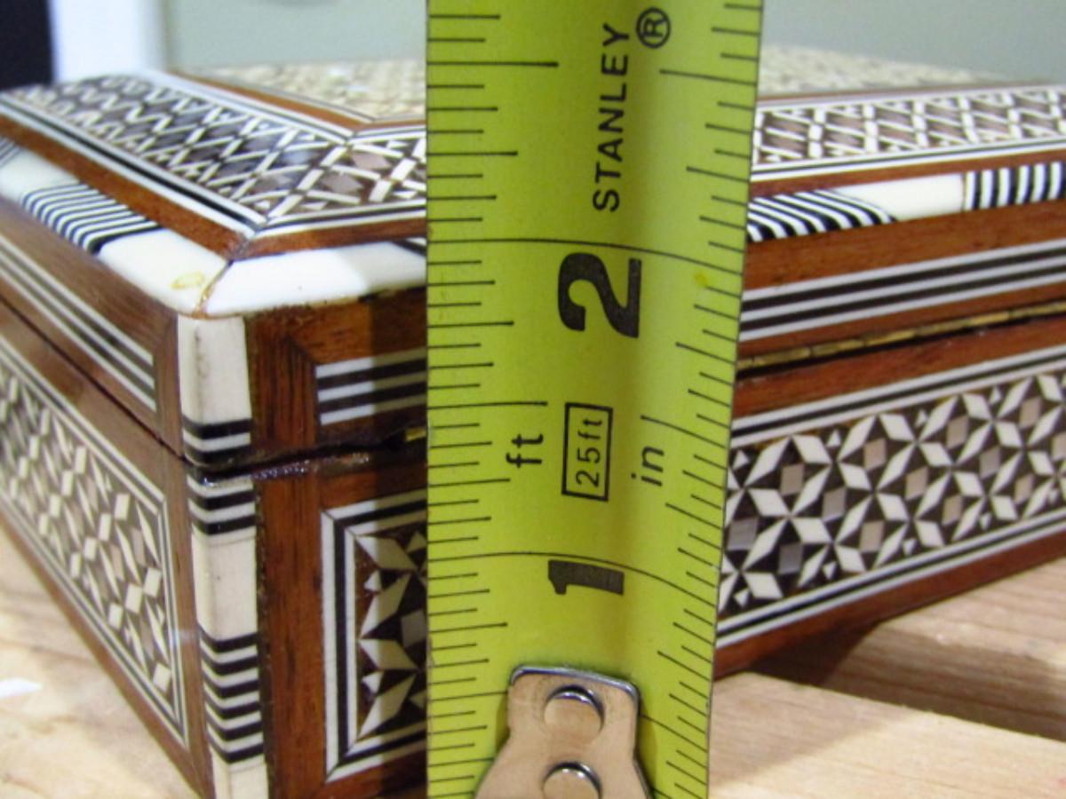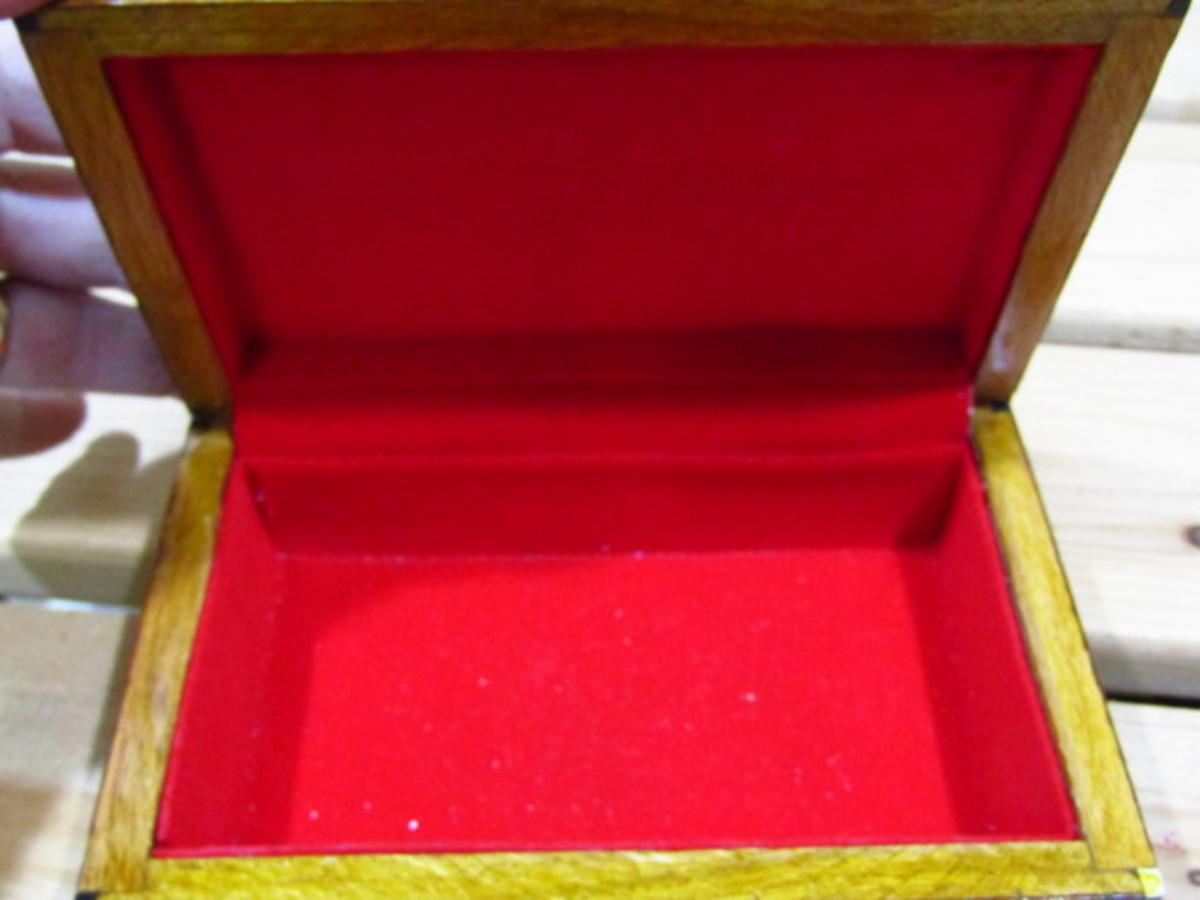 Wooden Storage Box with Inlay. Measures approx 4" x 6" x 2"
