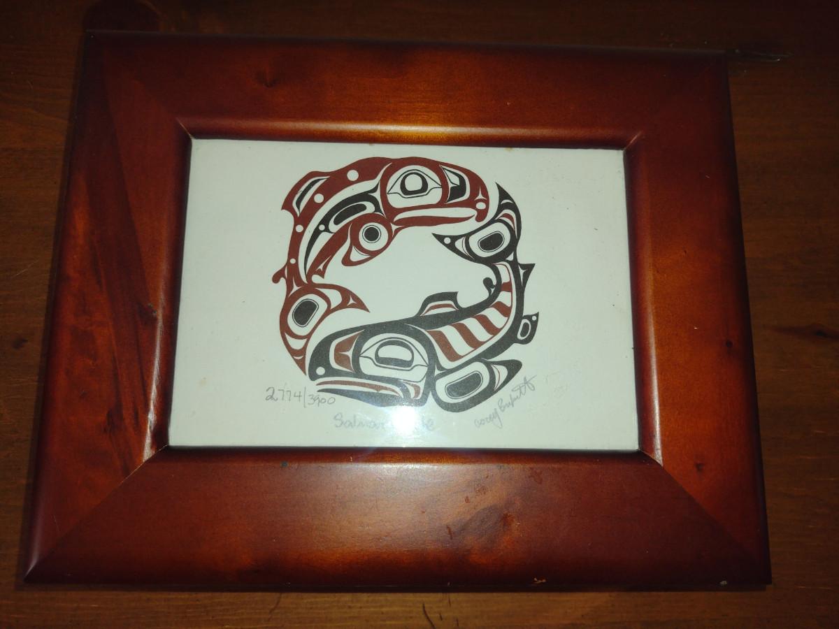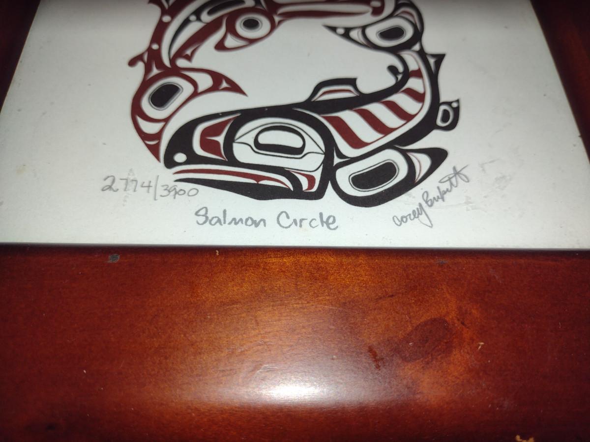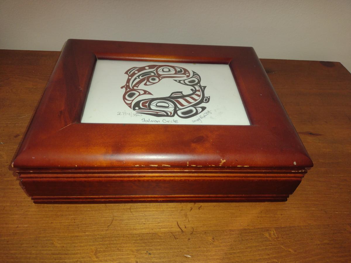 Wooden Storage Box with 'Salmon Circle' Print on Lid- Signed and Numbered