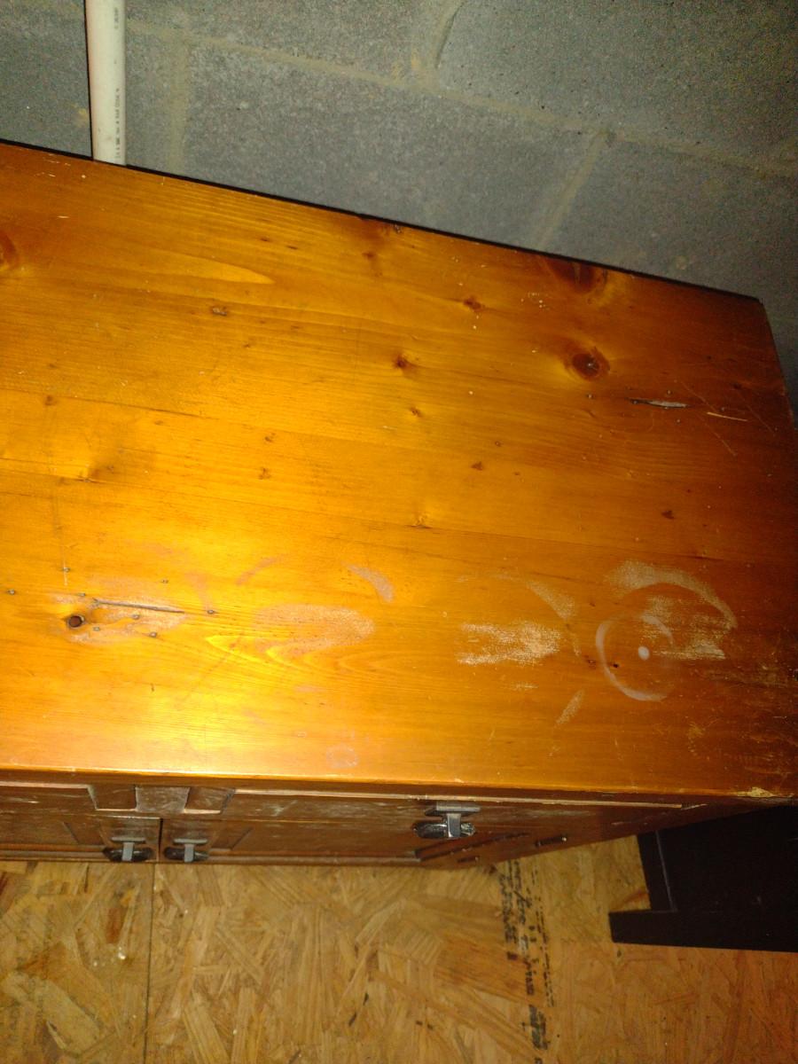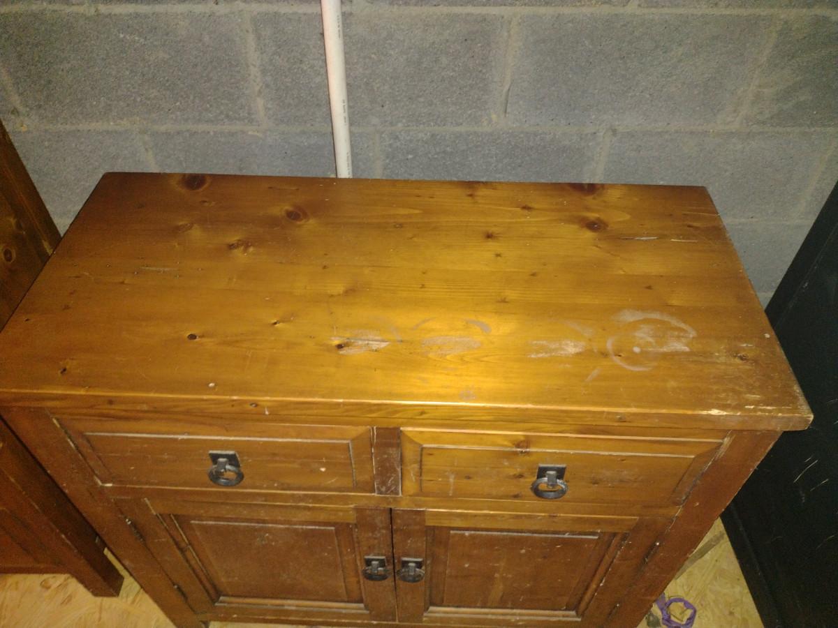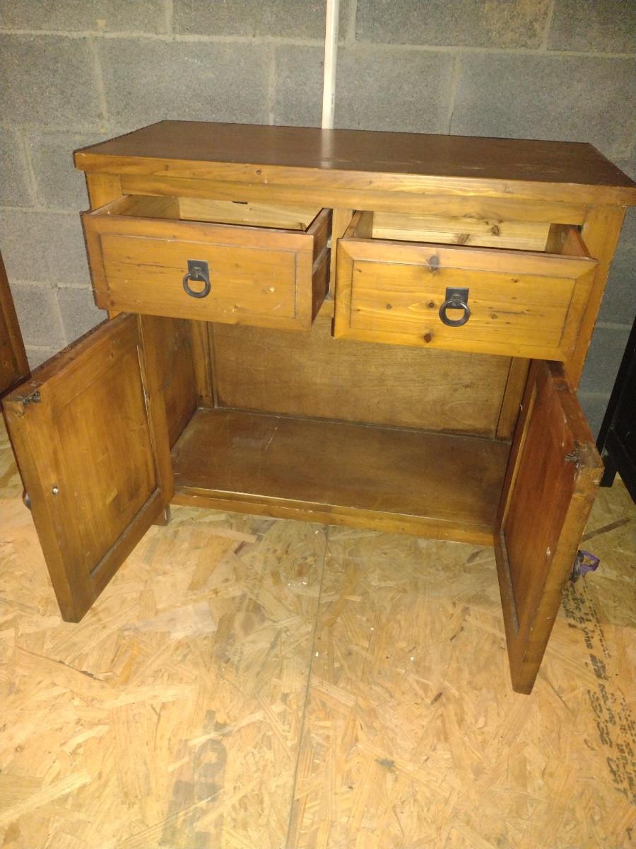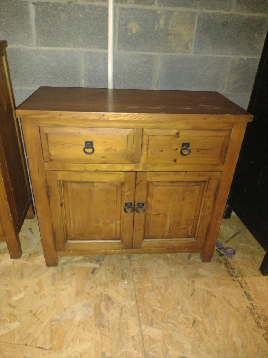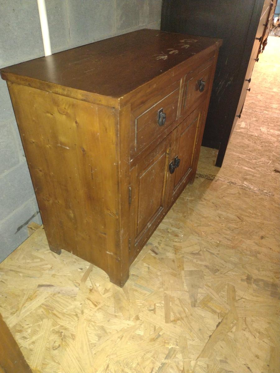 Wooden Storage Cabinet. Item is located in crawlspace and must be carried up approx 18 steps up a hill.