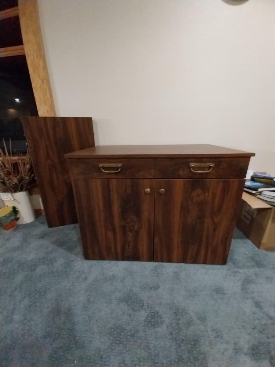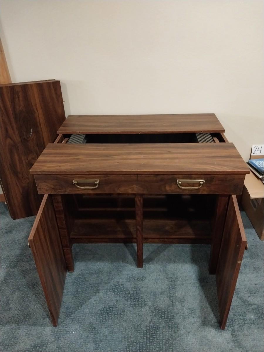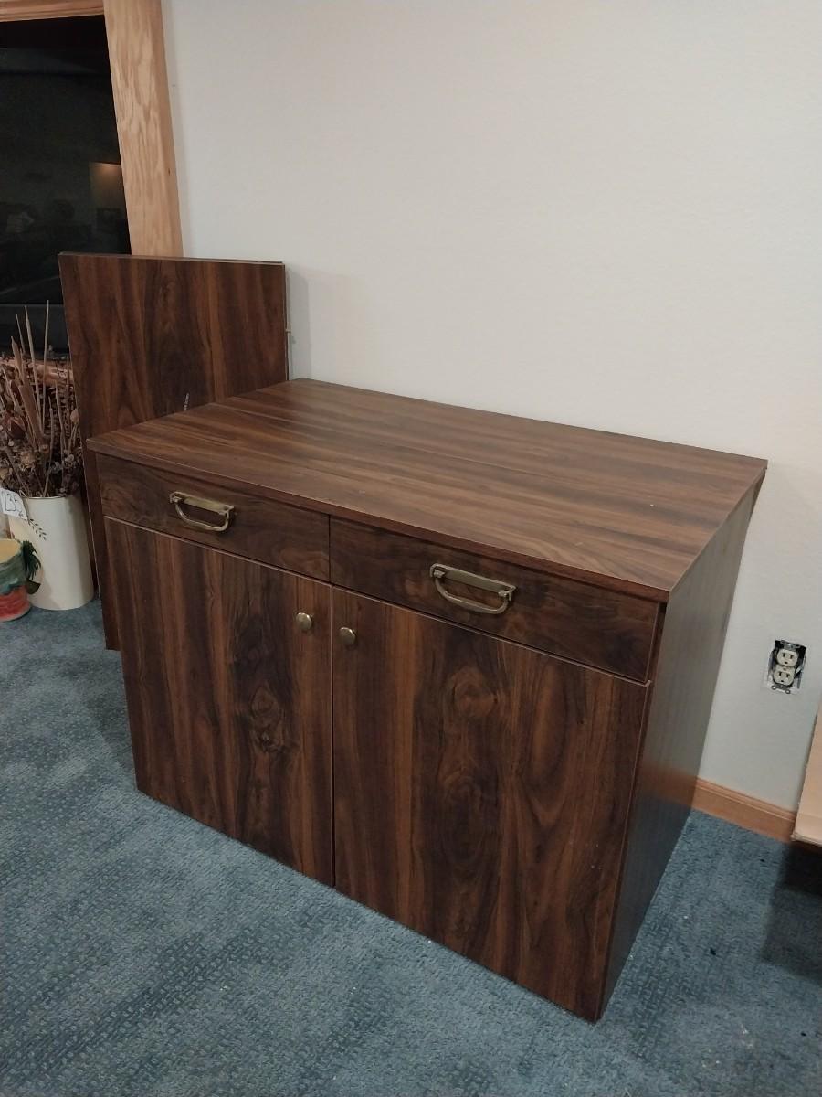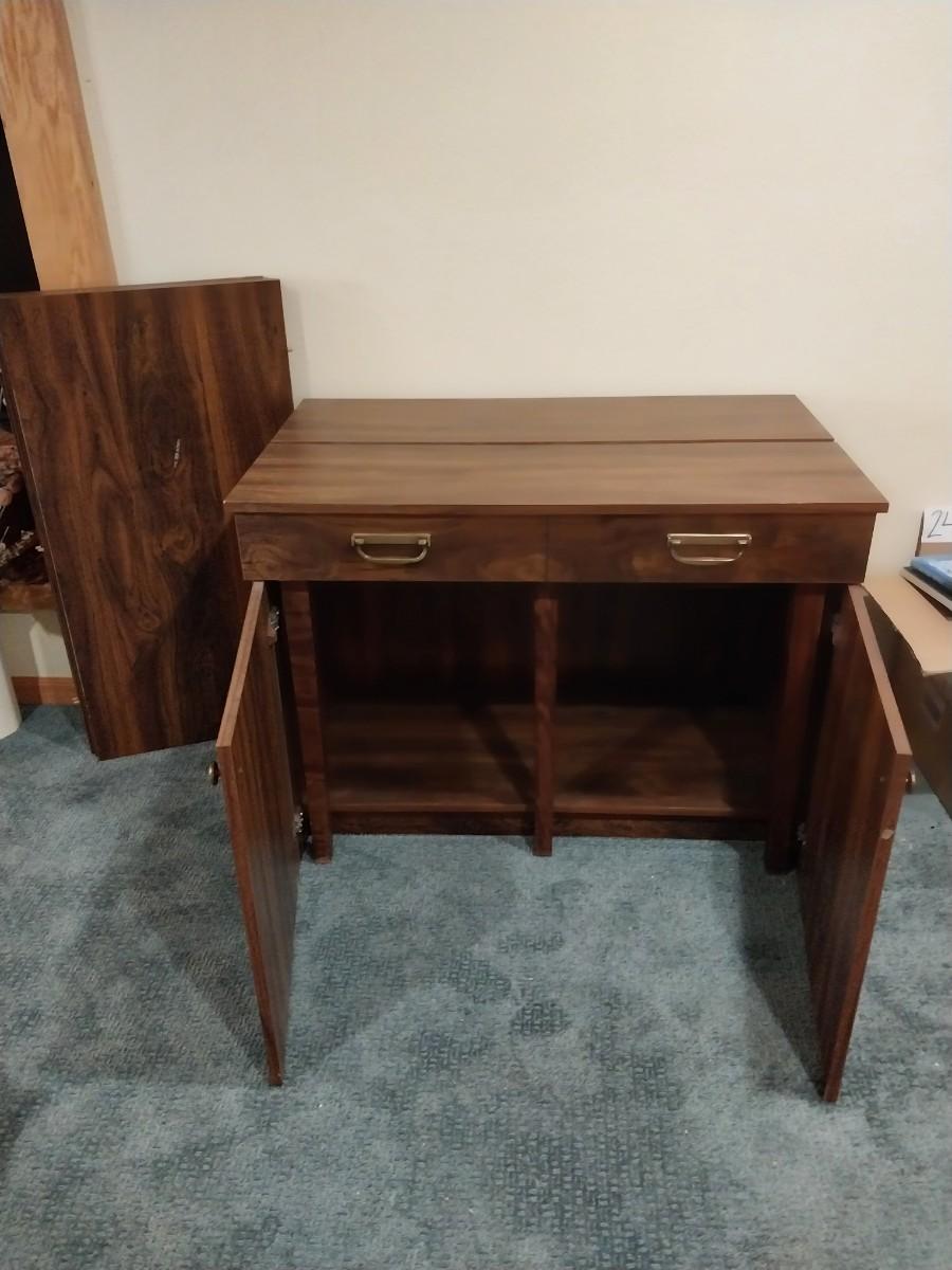 WOODEN STORAGE CABINET WITH EXTENDED TABLETOP OPTION
