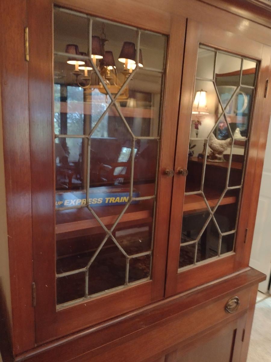 Wooden Storage Hutch with Leaded Glass Doors (No Contents)