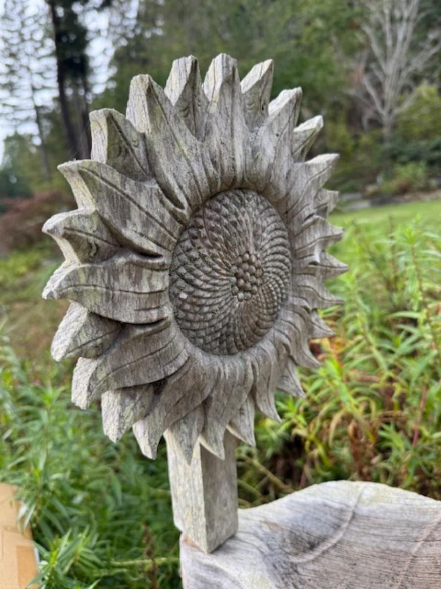 Bird feeder wood - 48" H, Feeder 13" L x 8" W and Sunflower with 10" diameter
