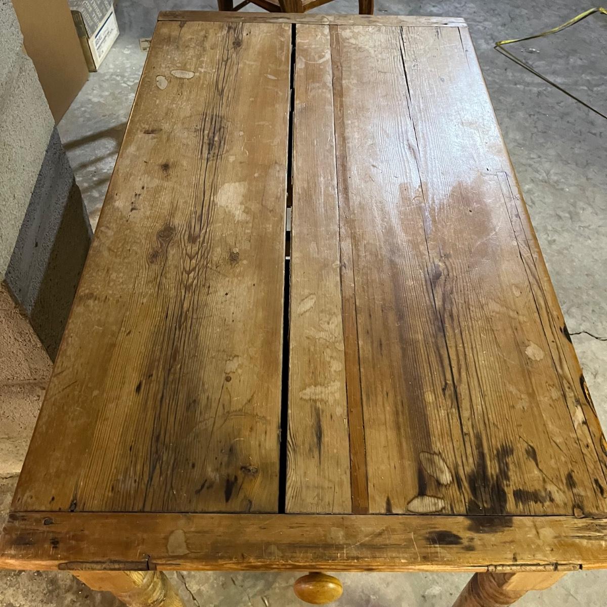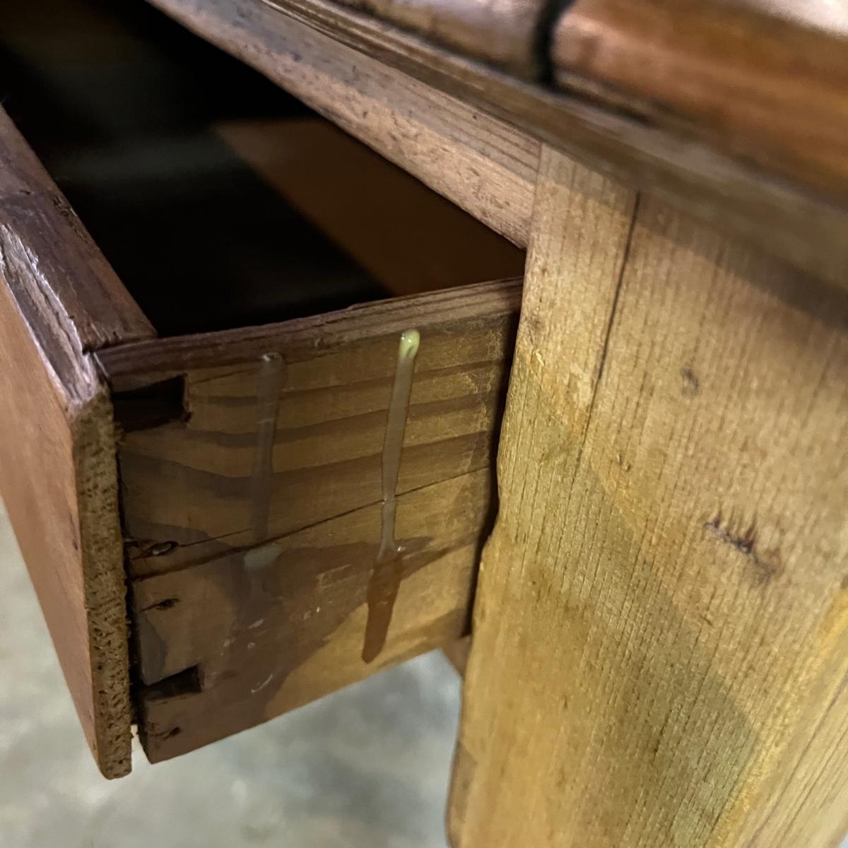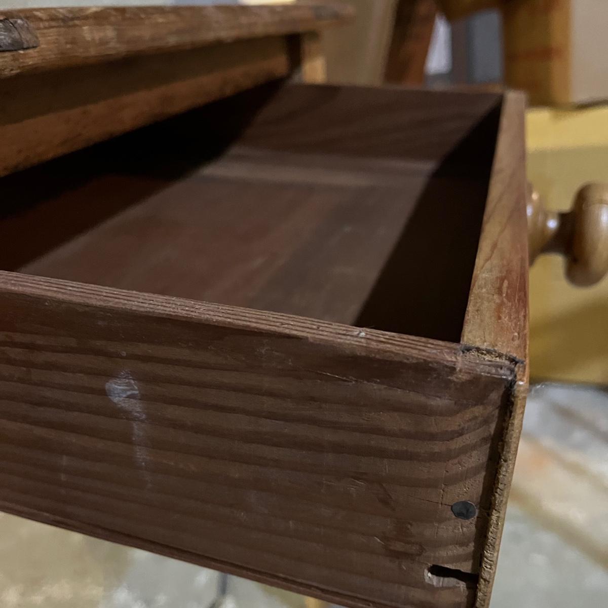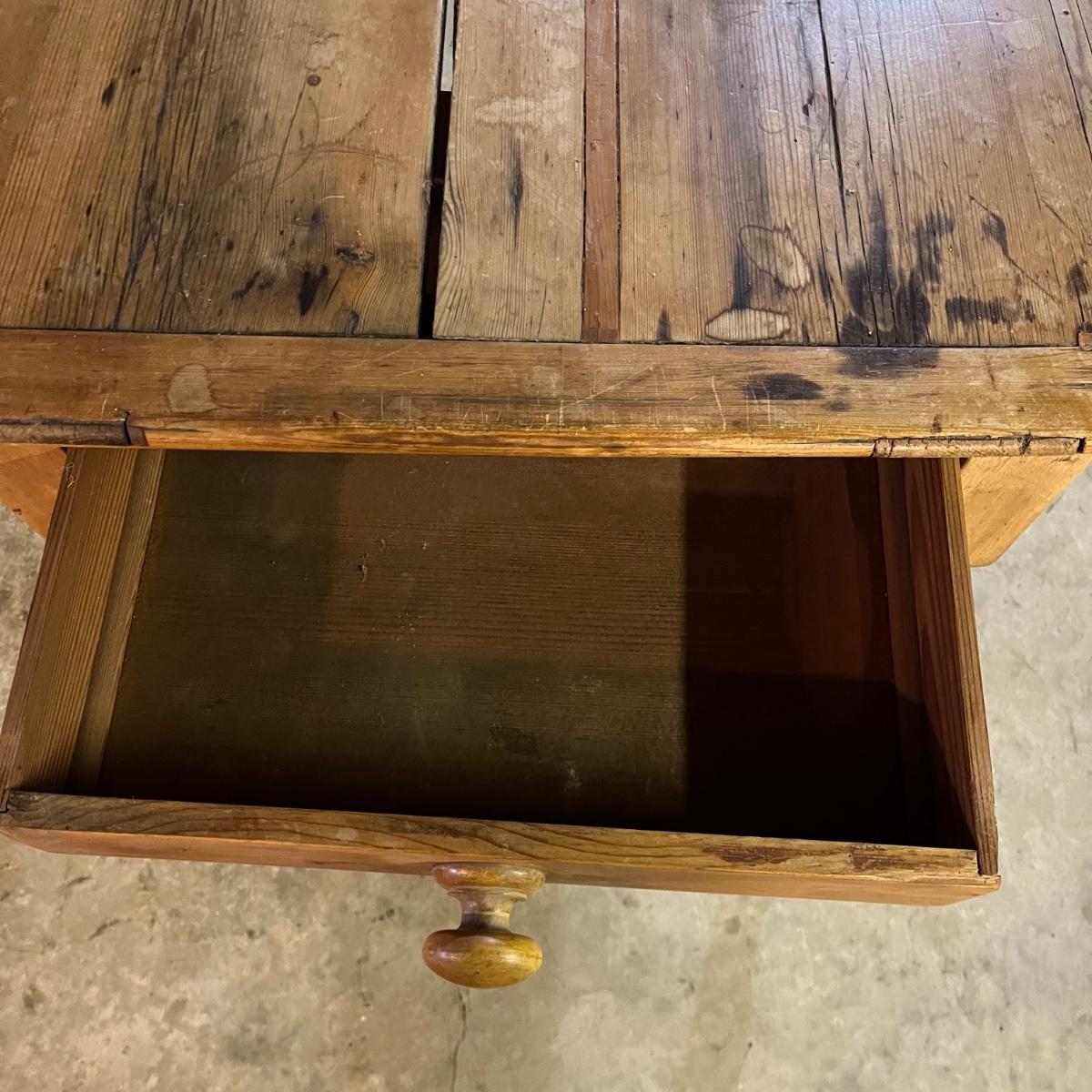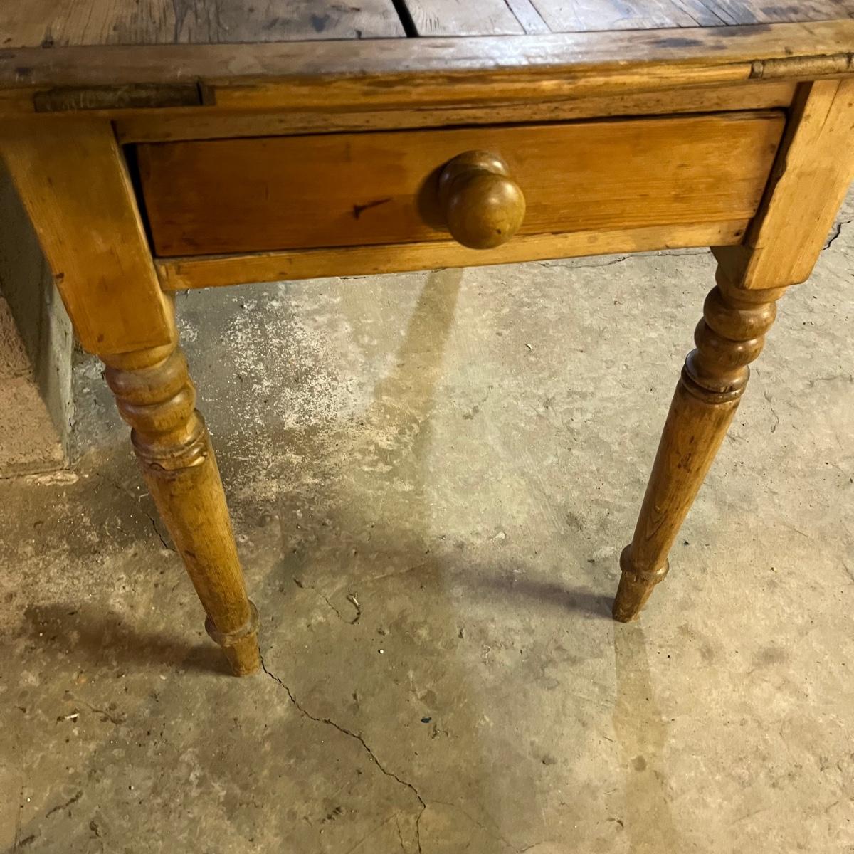 Lot includes a solid wood table with a drawer on each end. Table has some scratches, nicks, and water stains, as well as a split on the top; see pictures. Table has stickers that say Chapman and Warwick, LTD. Table measures 24” x 42” x 28”.