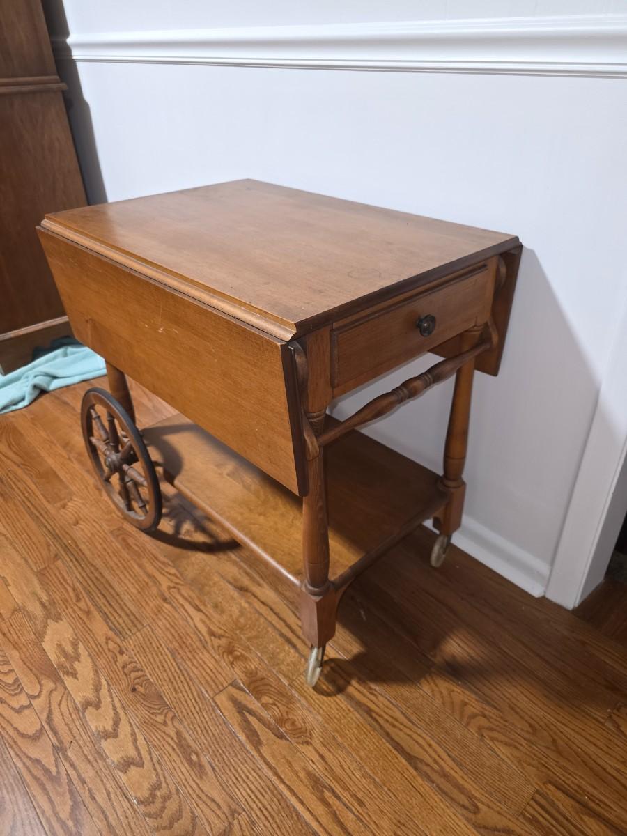 Even has a drawer. Fun piece for anyone. I can see it rolled out to the garden for high tea. Made by Sprague and Carleton out of New Hampshire