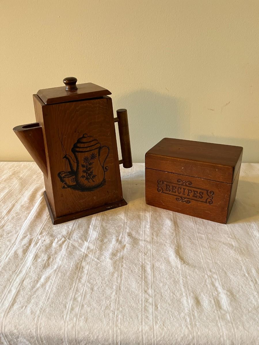 Wooden Tea Pot and Recipe Box (K)