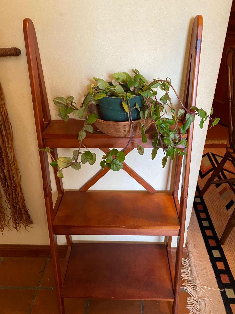 Wooden three shelf plant stand, approx 18w x 42h, bottom shelf is 9-1/2d