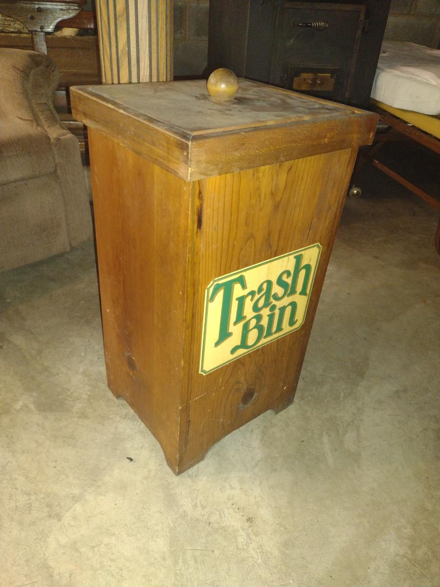 Wooden Trash Bin with Lid- Approx 13" x 11 3/4" x 24" Tall