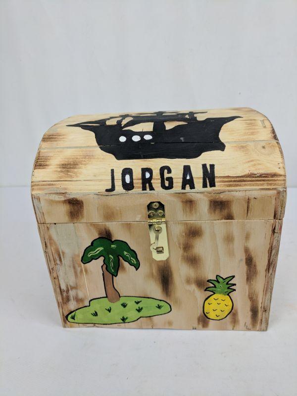 Wooden Treasure Chest, Hand Painted "Jorgan"
