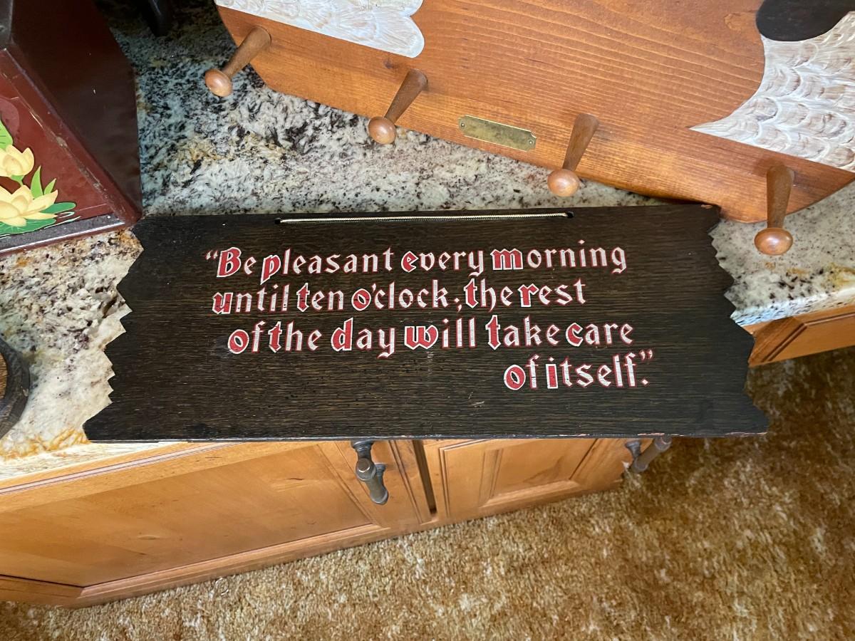 Wooden Trinket box, Coat hooks and Motivational Quotes. Large Box w/Lid: 22L x 6 1/2W x 7H.