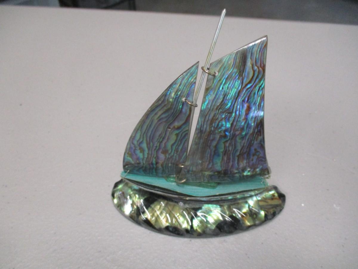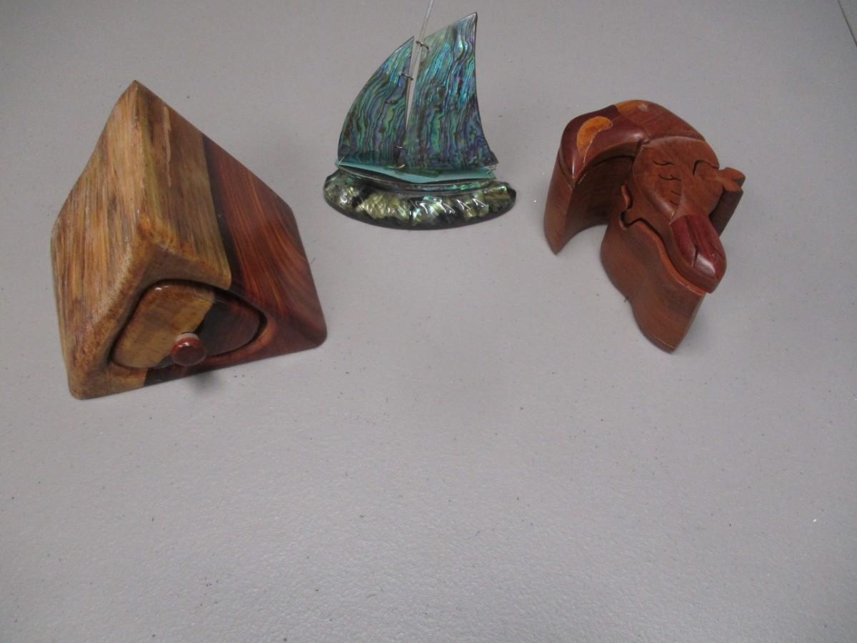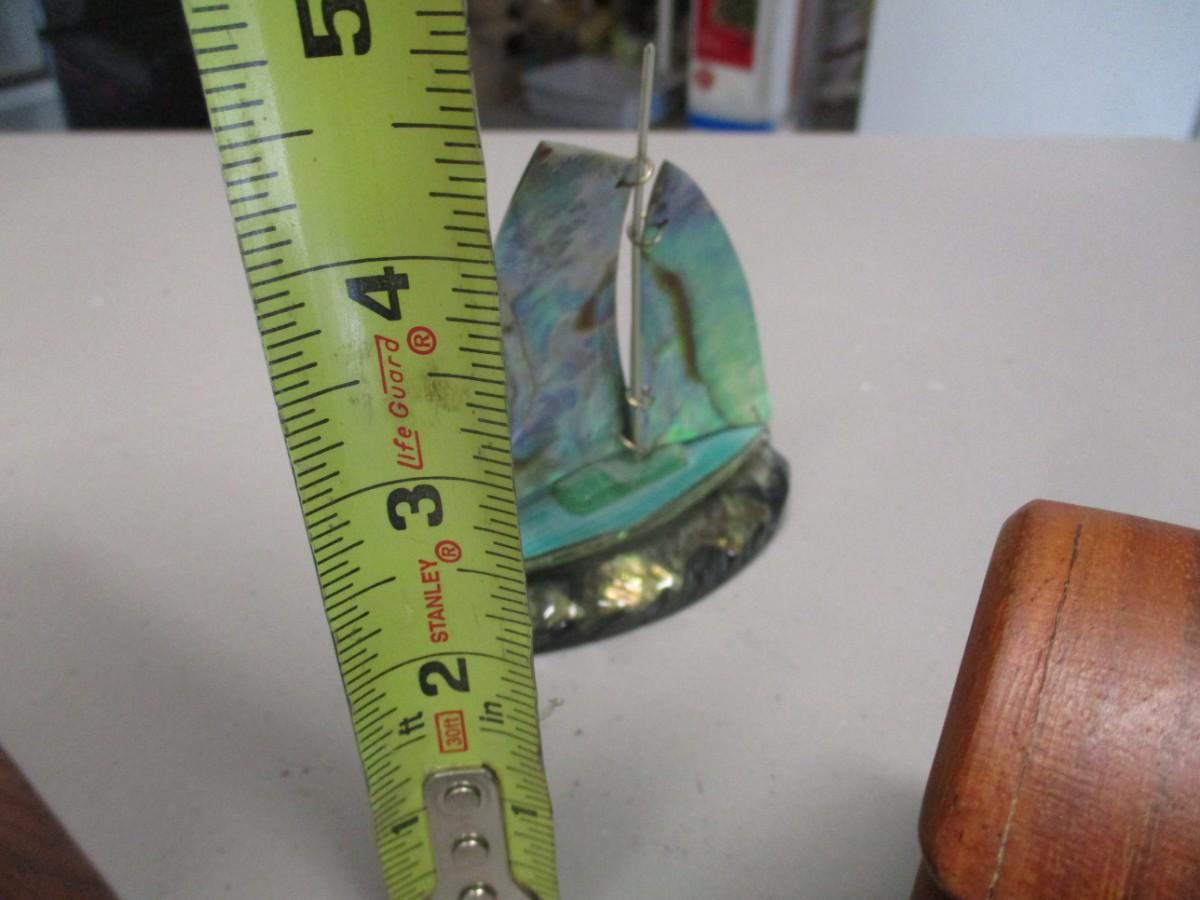 Wooden Trinket Puzzle Boxes Vintage Paua Shell Yacht (G)