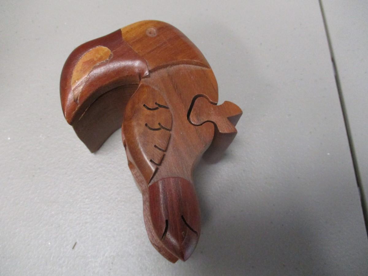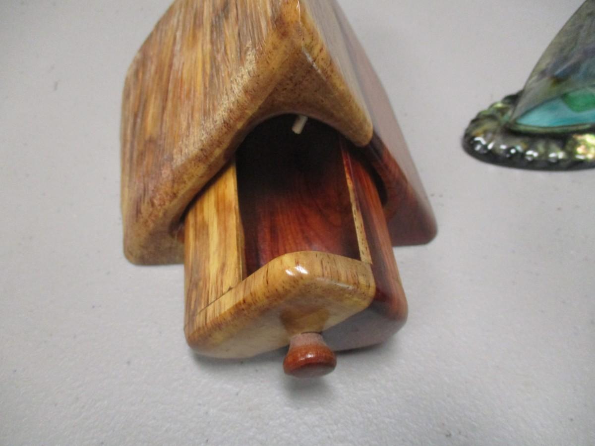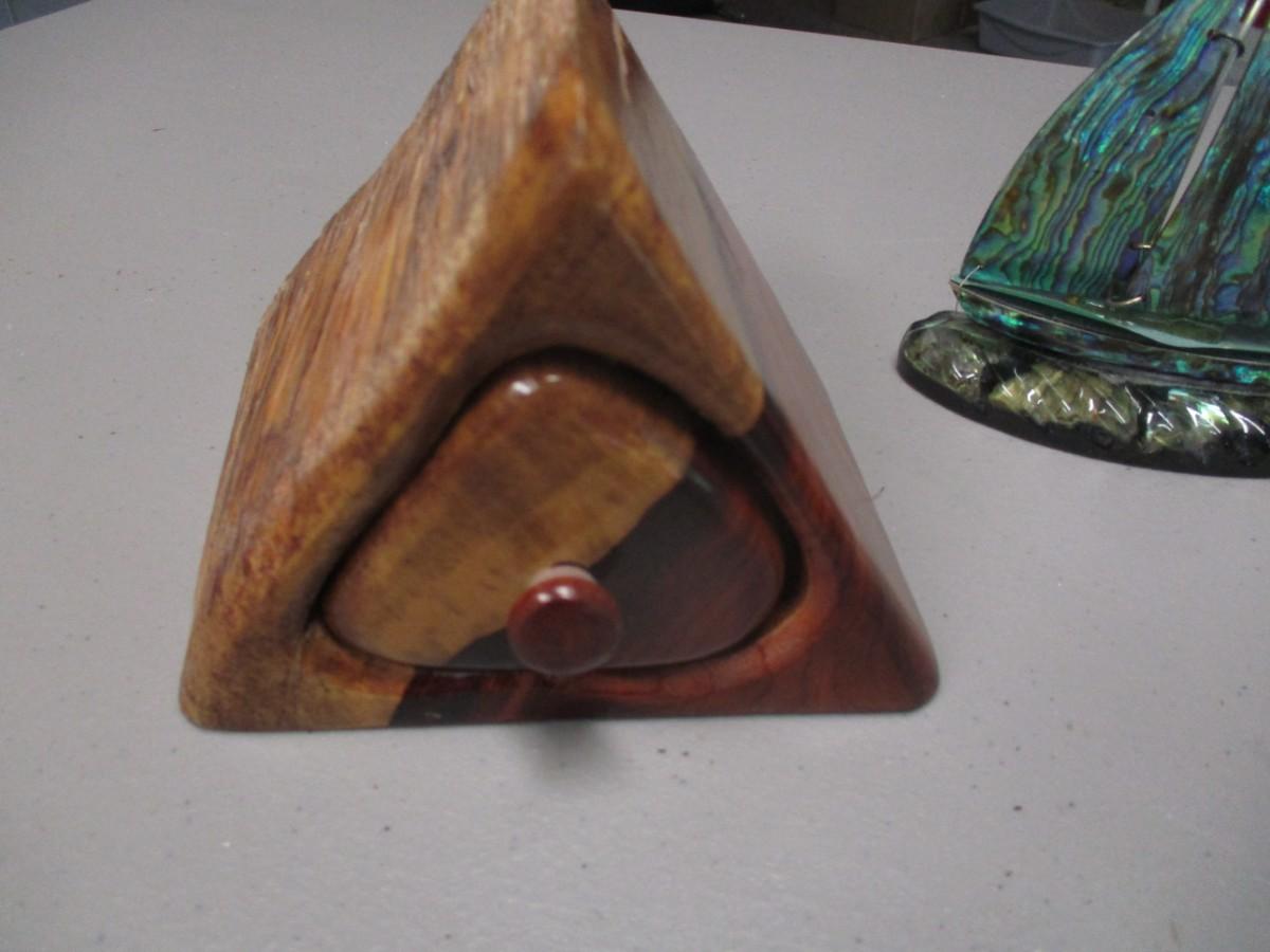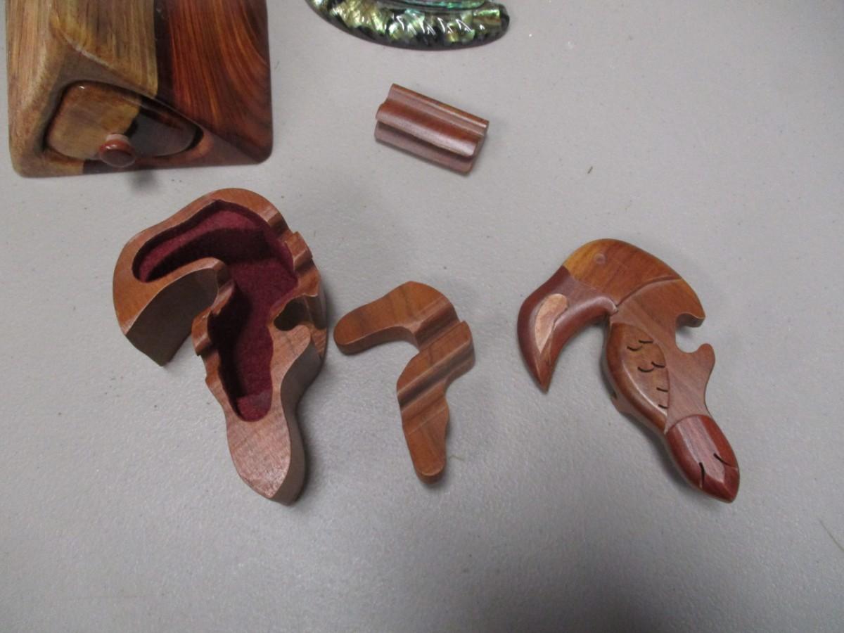 Wooden Trinket Puzzle Boxes Vintage Paua Shell Yacht (G)