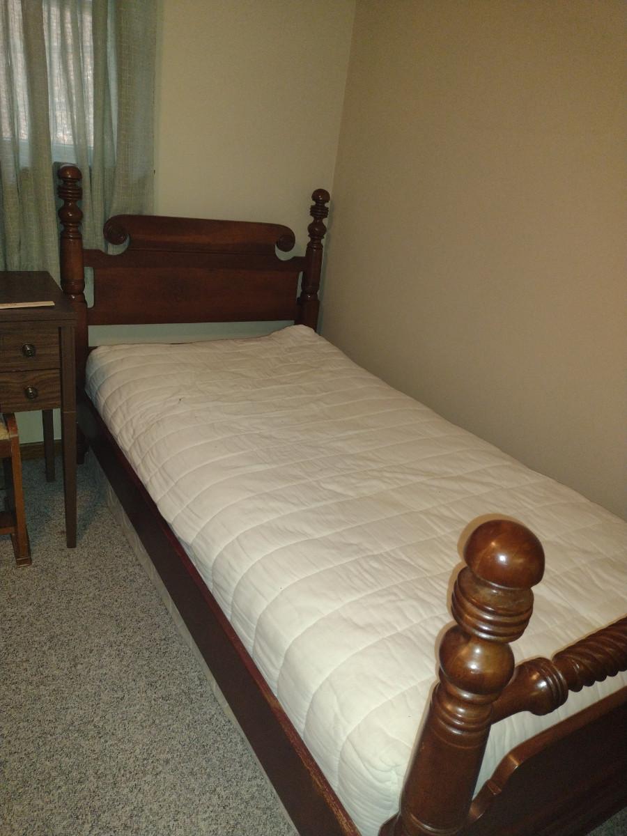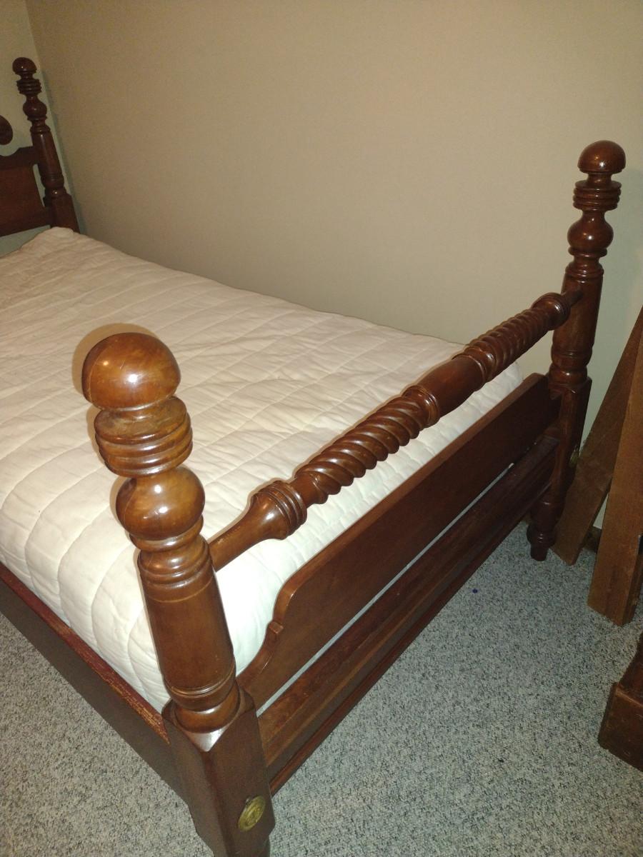 Wooden Twin Size Bed Set- Measures Approx 41" Wide, 81" Long. Includes mattress.