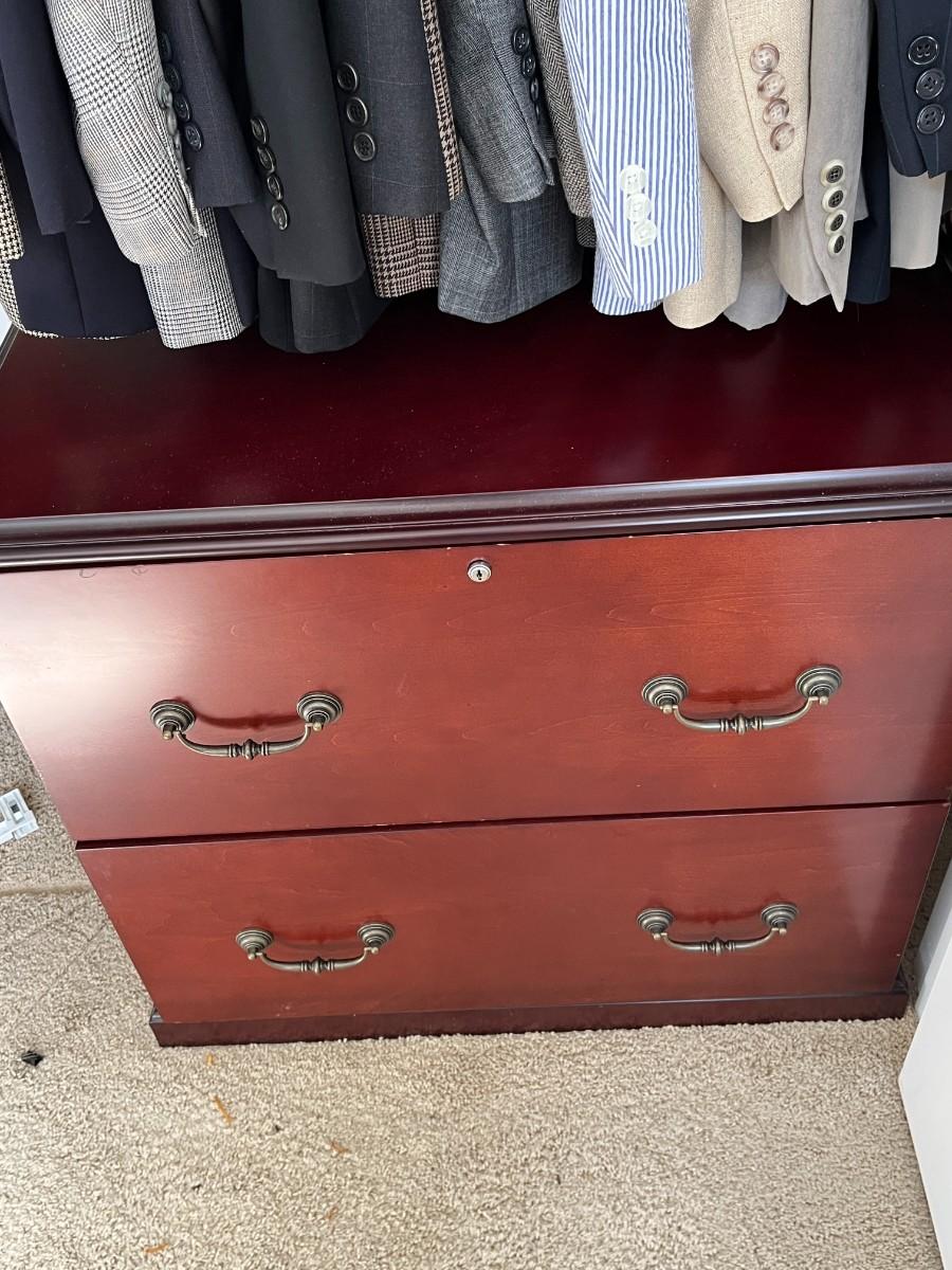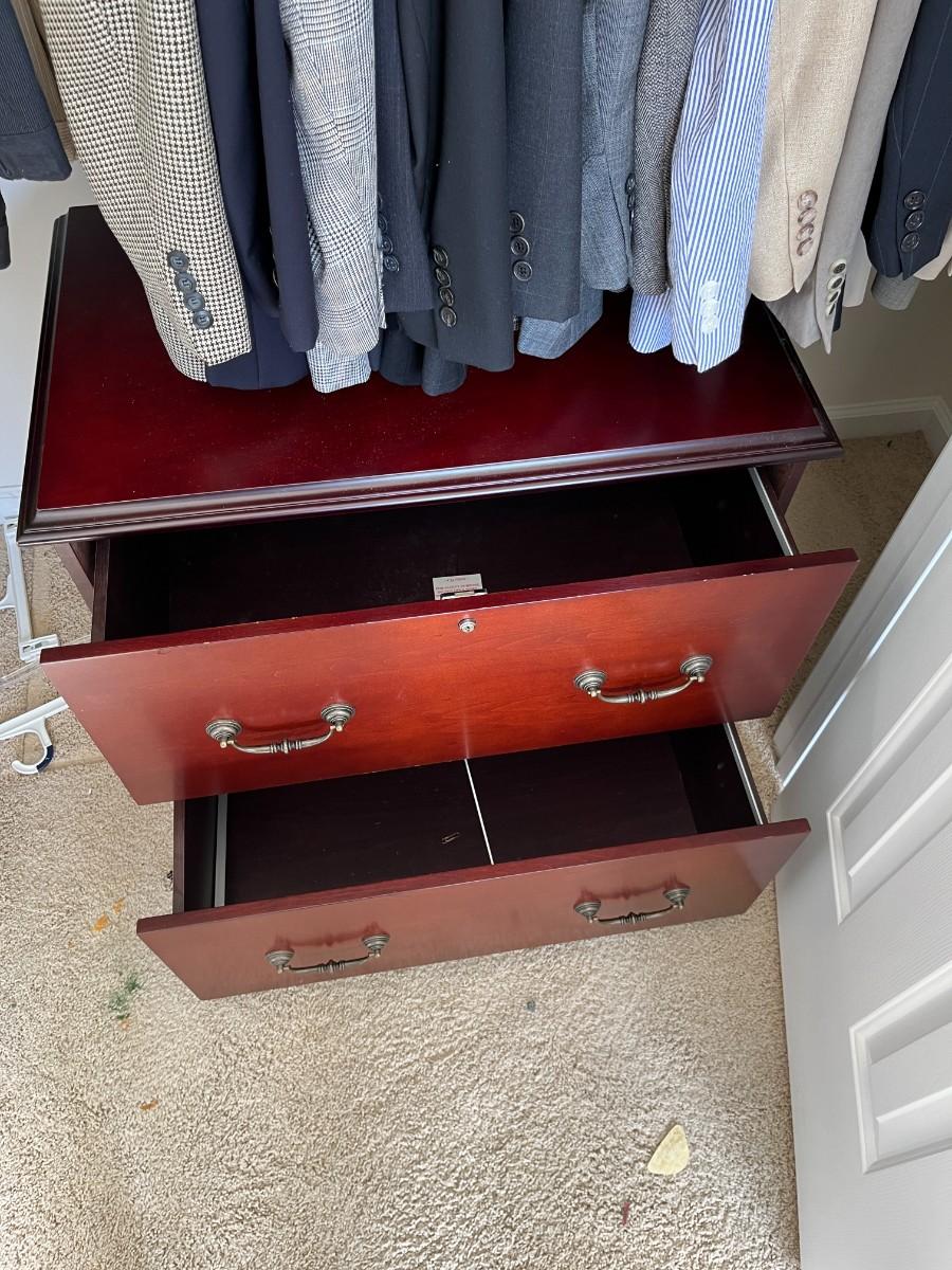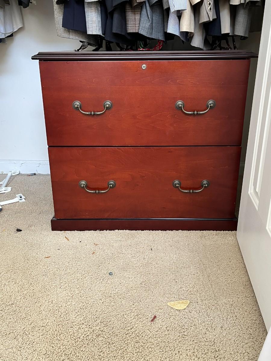 Wooden Two Drawer Vertical File Cabinet. NO KEY