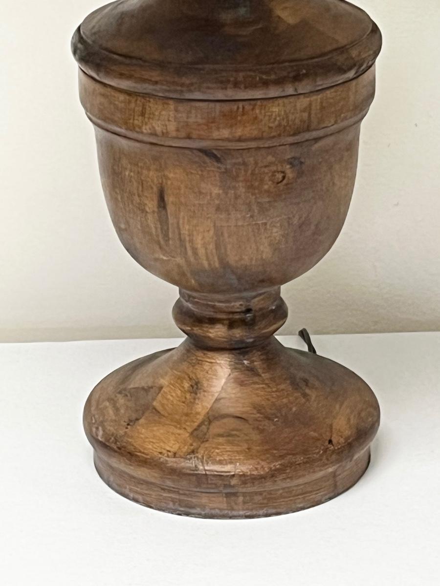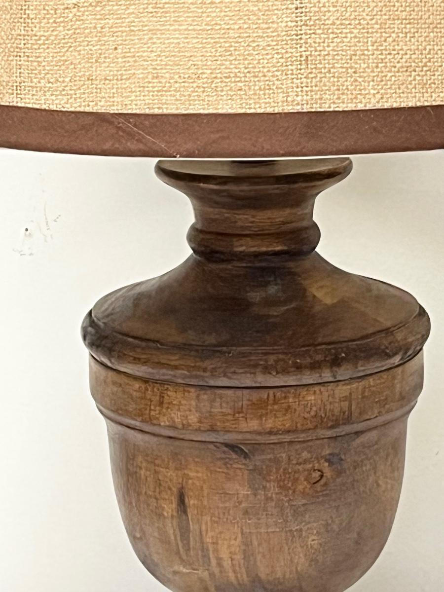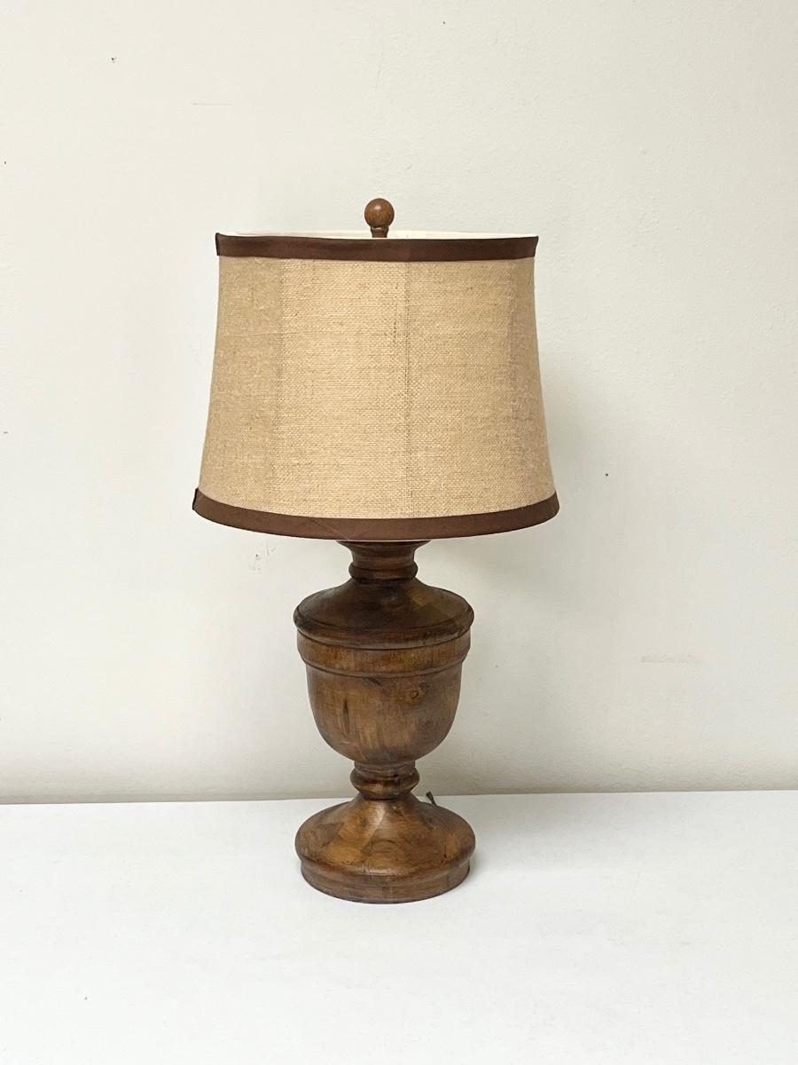 Wooden Urn Shaped Lamp ~ Tan Burlap Shade