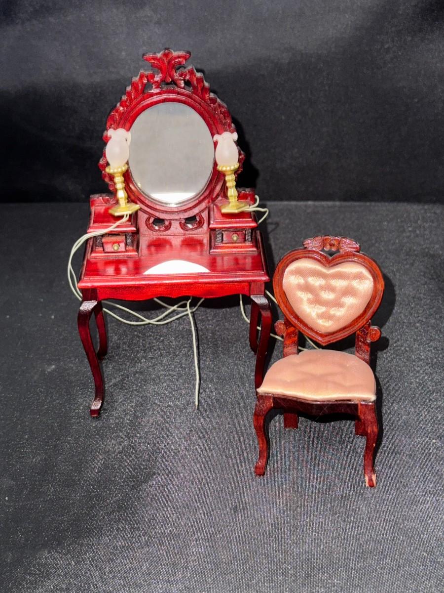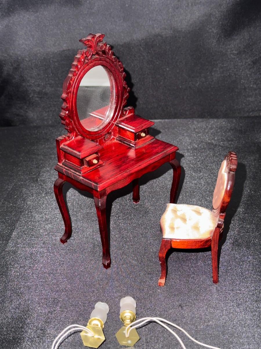 Wooden Vanity with 2 Electrified Lamps Vintage Miniature Dollhouse Furniture 1:12 Scale