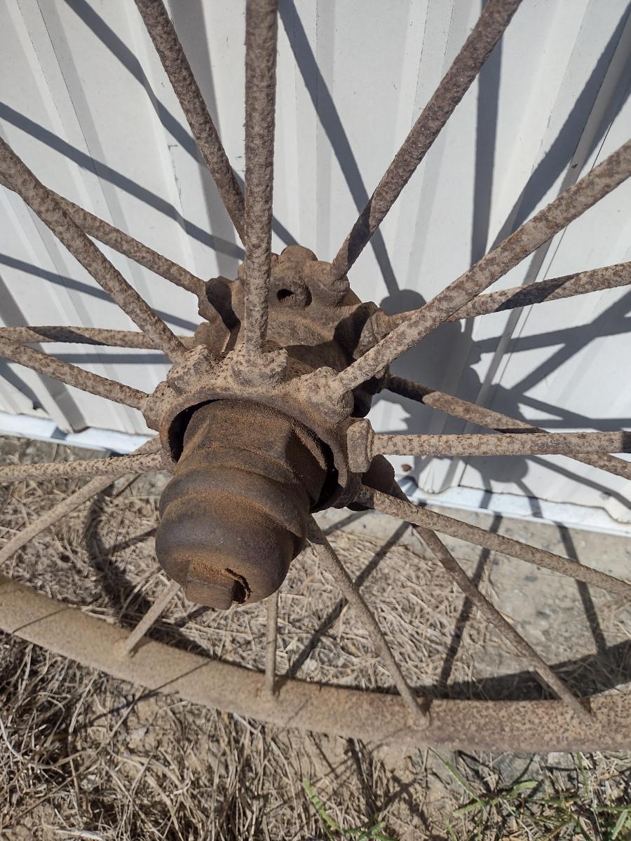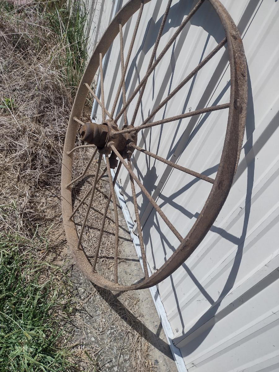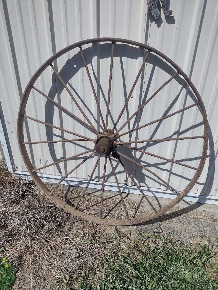 Vintage Wooden Wagon Wheel with Metal Hub- Approx 39" in Diameter (#1)