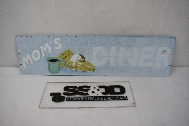 Wooden Wall Decor, Blue "Mom's Diner" Kitchen Decor 7" x 27"