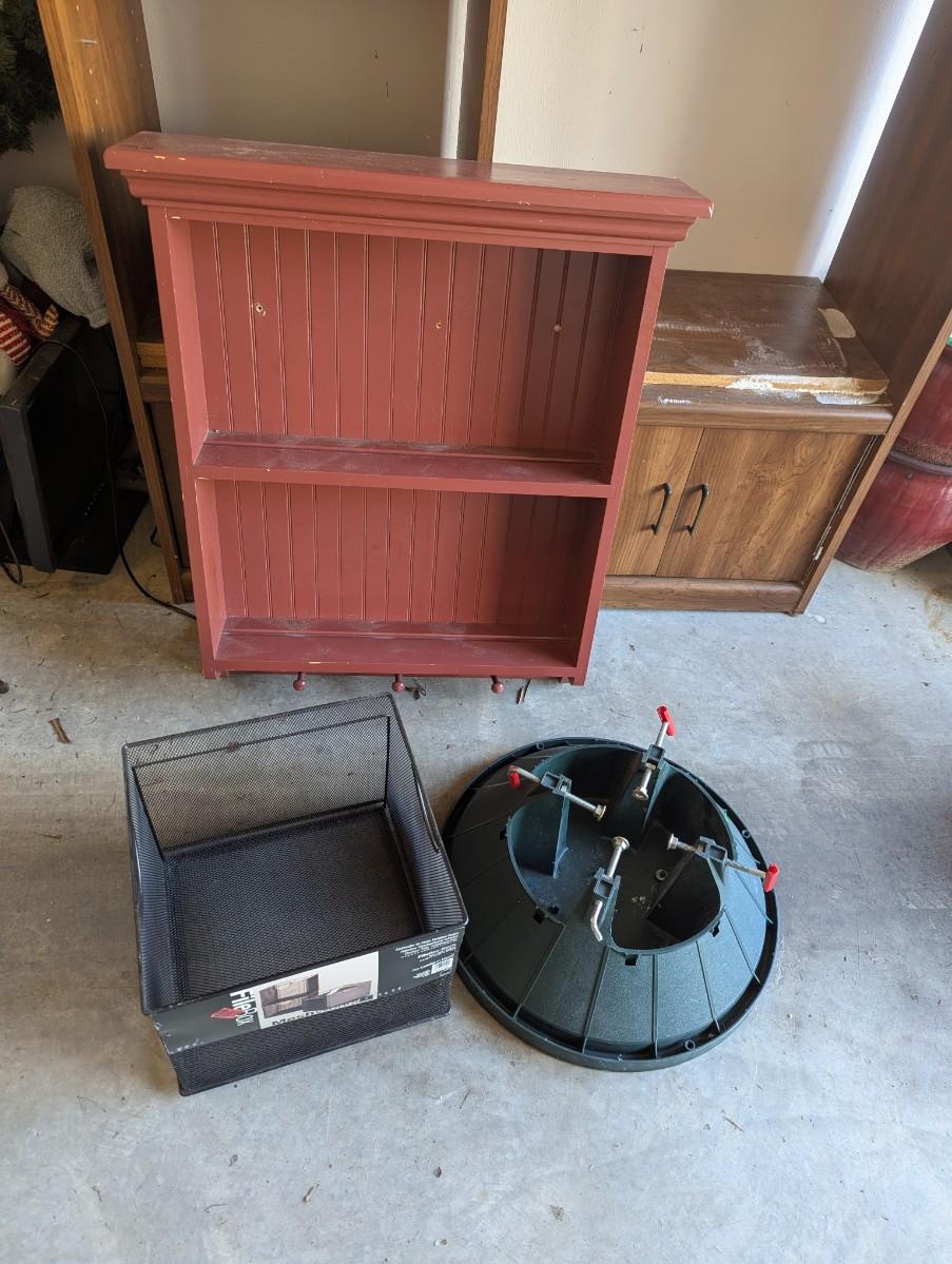 Wooden Wall Shelf File Basket & Christmas Tree Stand
