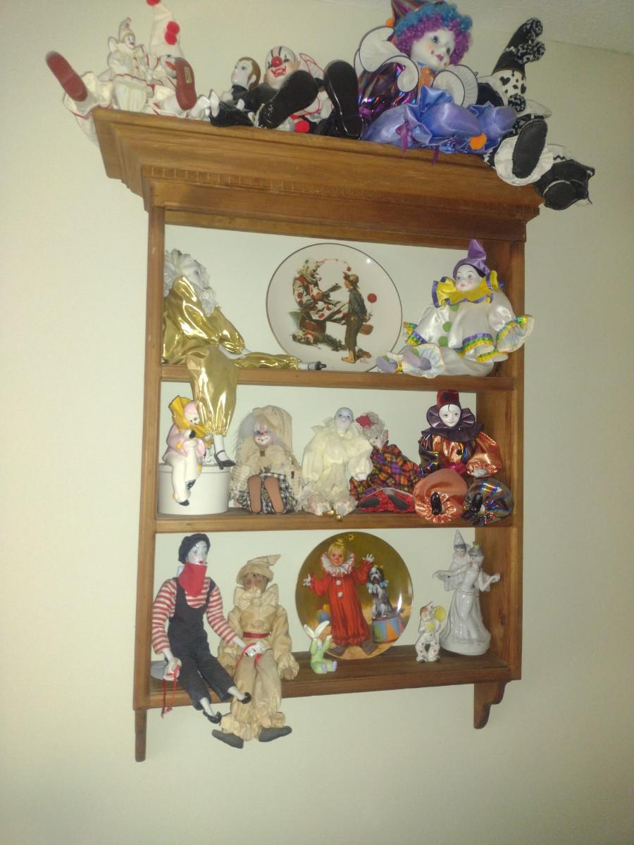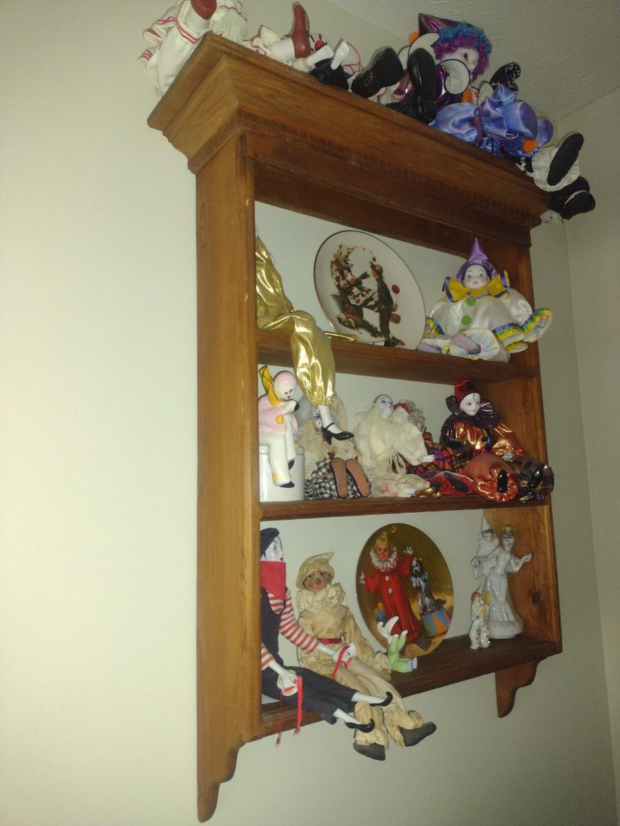 Wooden Wall Shelf Unit- Approx 27" Wide, 6 1/2" Deep, 43" Tall. No contents included.
