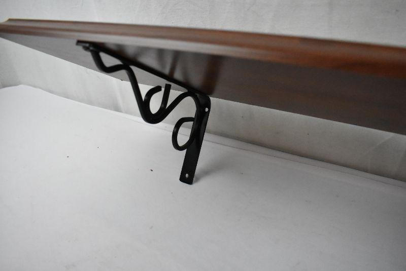 Wooden Wall Shelf with Black Metal Supports (includes hardware)