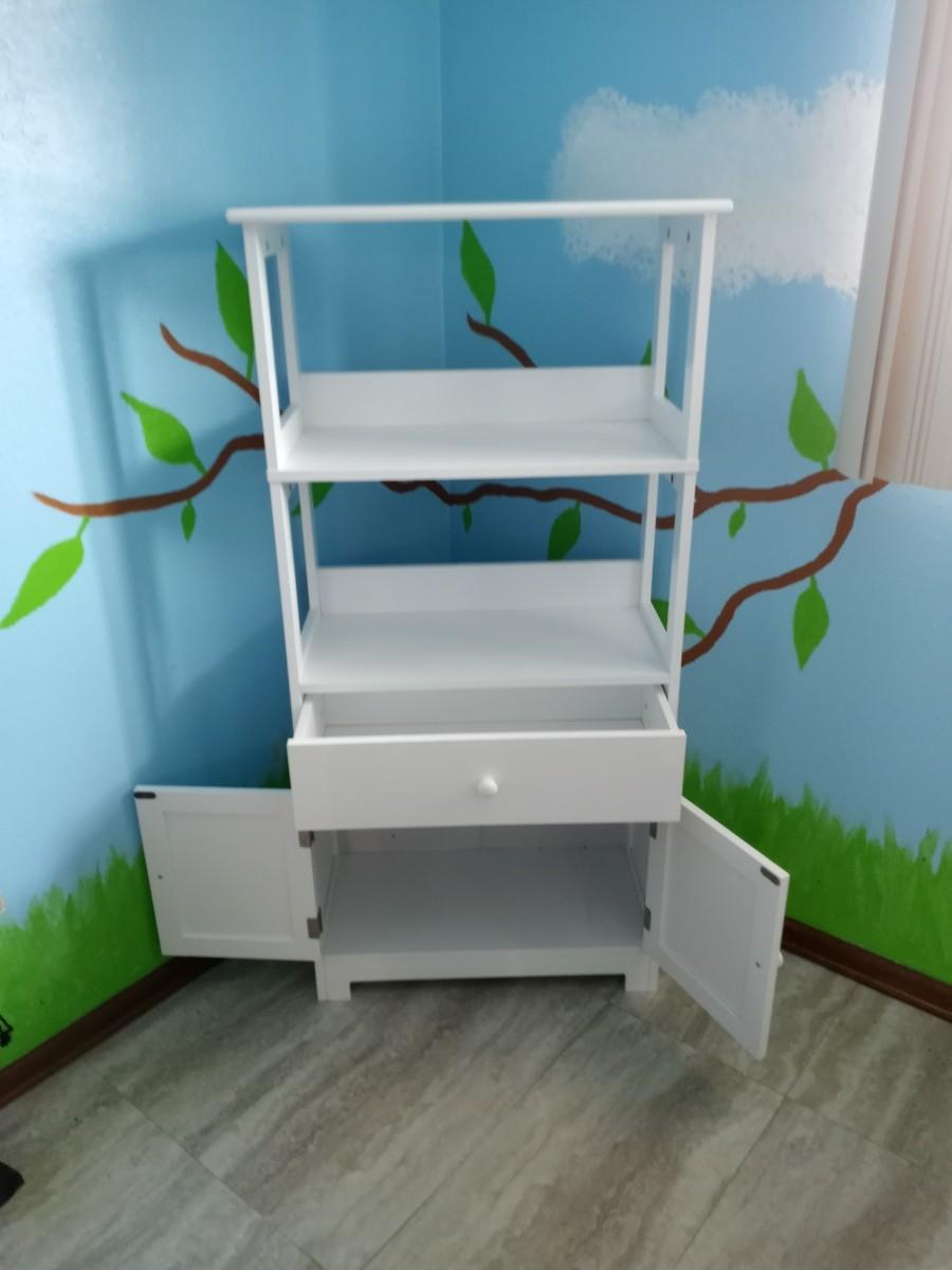 WOODEN WHITE SHELVING UNIT